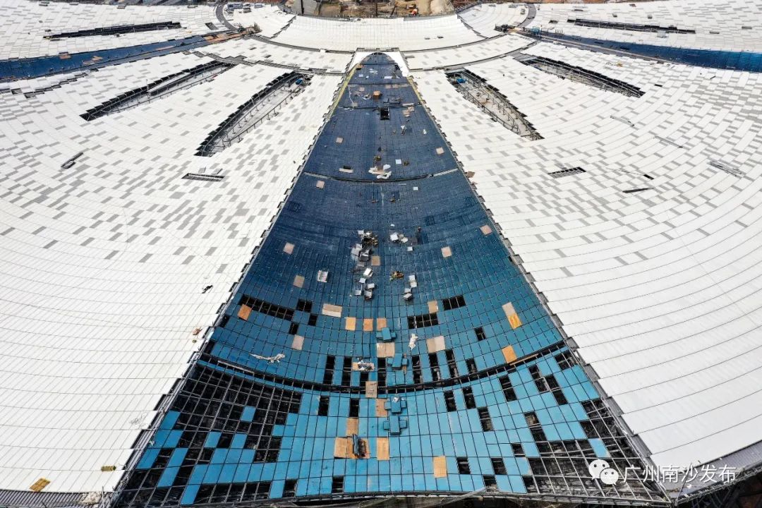 小南登上国际会议中心金属屋面看到,屋面的装饰铝板已基本铺设完成,“木棉花”已然盛开。