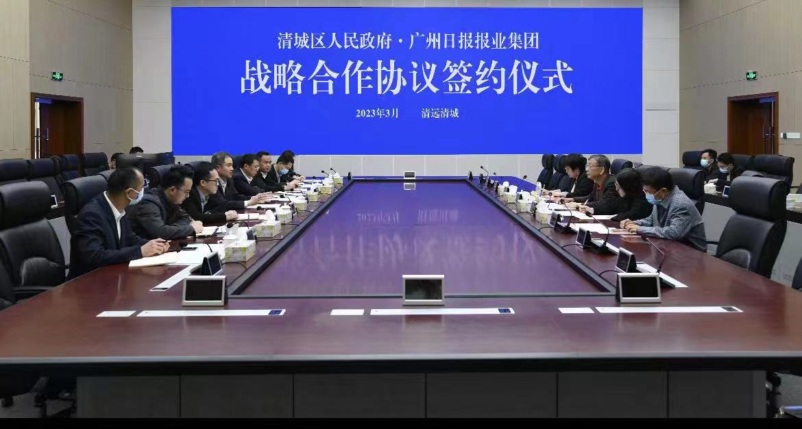 3月3日下午,清远市清城区人民政府与广州日报报业集团举行战略合作协议签约仪式,双方将共同贯彻落实广清一体化高质量发展战略,以新的“传播+文化+产业+品牌”模式和经验,在城市形象提升、文旅品牌规划、乡村振兴、旅游节事活动打造、文化资源挖掘开发等方面进行战略合作,助力清城区探索开创中国式现代化县域样本的新局面发展路径。