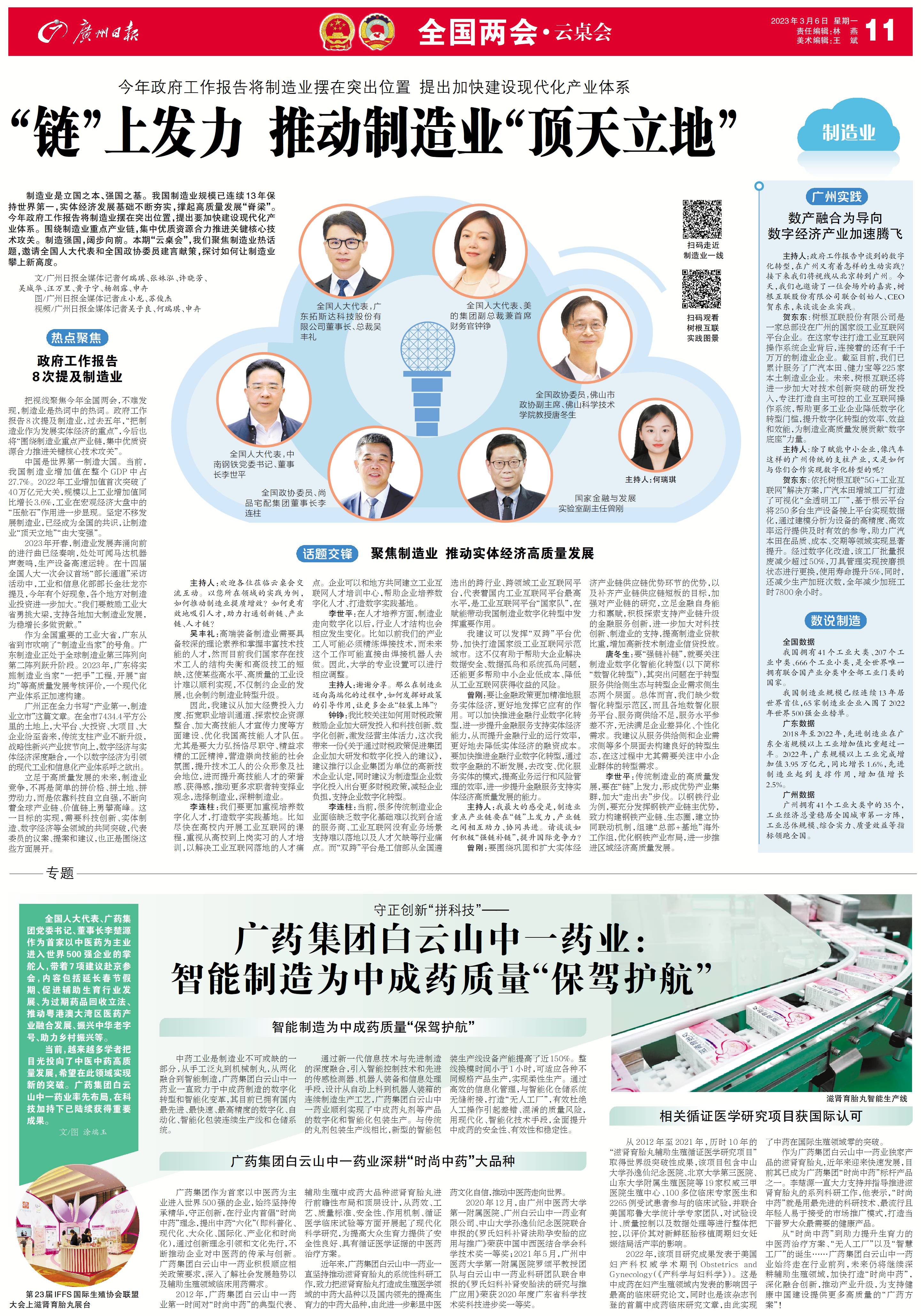 贺东东:树根互联股份有限公司是一家总部设在广州的国家级工业互联网平台企业。在这家专注打造工业互联网操作系统企业背后,连接着的还有千千万万的制造业企业。截至目前,我们已累计服务了广汽本田、健力宝等225家本土制造业企业。未来,树根互联还将进一步加大对技术创新突破的研发投入,专注打造自主可控的工业互联网操作系统,帮助更多工业企业降低数字化转型门槛,提升数字化转型的效率、效益和效能,为制造业高质量发展贡献“数字底座”力量。