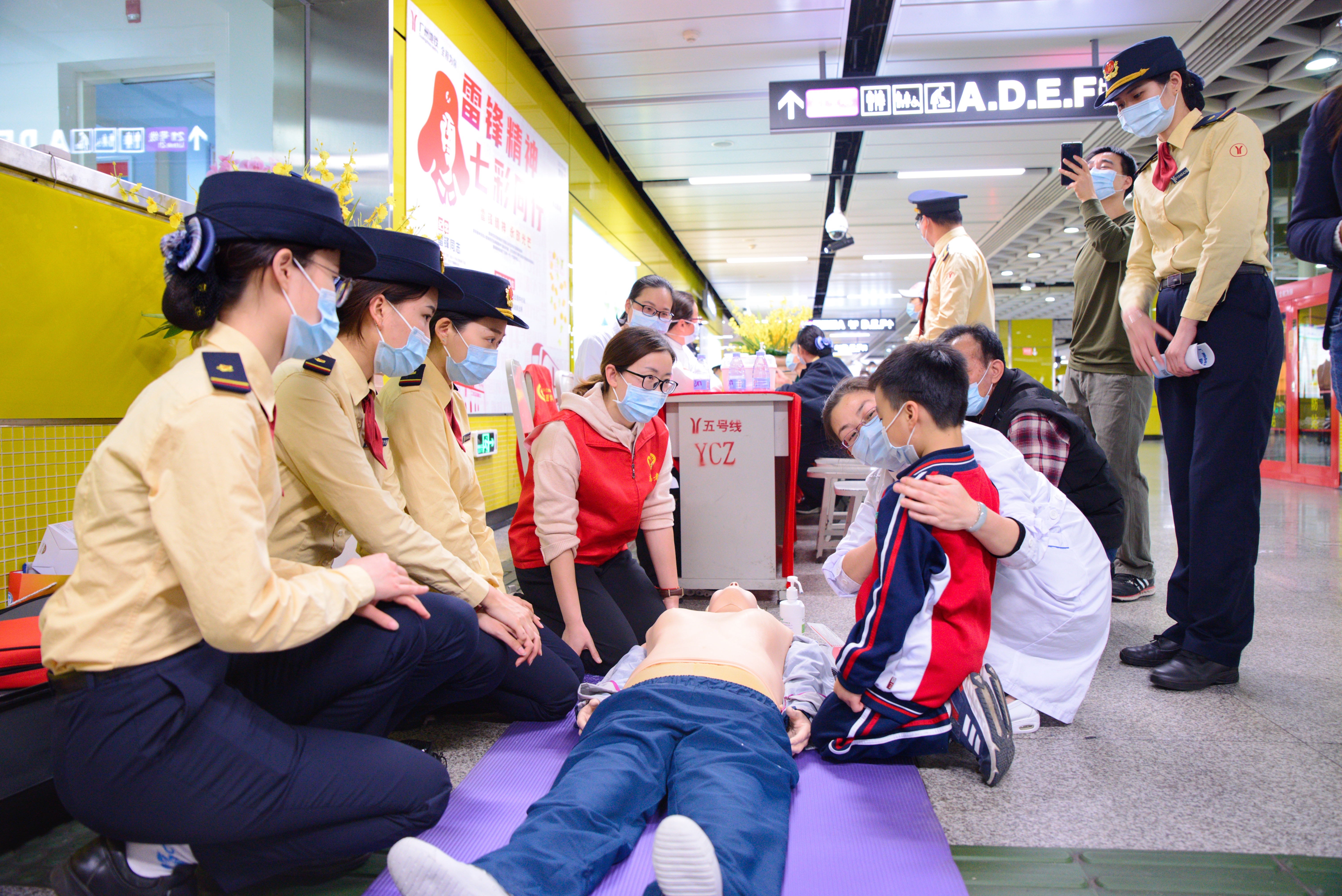 3月5日,广州地铁珠江新城站的醒目位置,活跃着一支特殊的小分队,他们身穿“红马甲”,佩戴“红十字”标志,一边宣传急救知识,一边随时响应车站及周边的应急救护需求。这是广州地铁联合市红十字会组建的应急救护志愿服务队在学雷锋活动。当天,来自本地各大专院校、企事业单位、团青组织和地铁集团的近2000名志愿者活跃在地铁线网300多个车站和列车车厢,开展各种形式的学雷锋志愿服务活动。