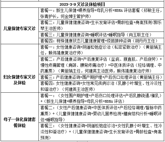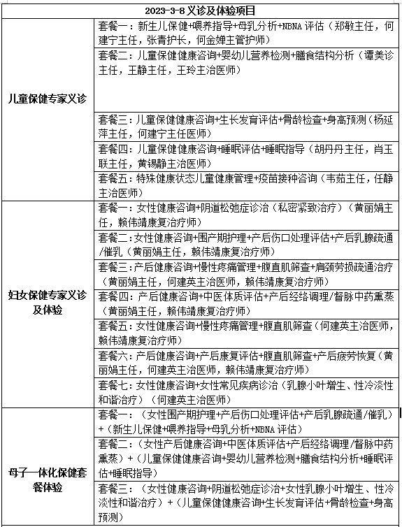 ● 母子一体化保健中心提供的“母子一体化保健”套餐,为各年龄段儿童以及产后宝妈、适育期和围绝经期女性,在“三八妇女节”之时,献上服务示范中心对妇女儿童人群最诚挚的关怀。