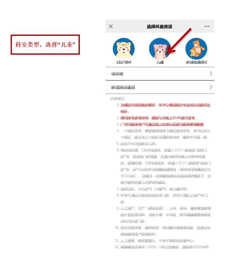 3. 点击选择“儿童”科室选项。