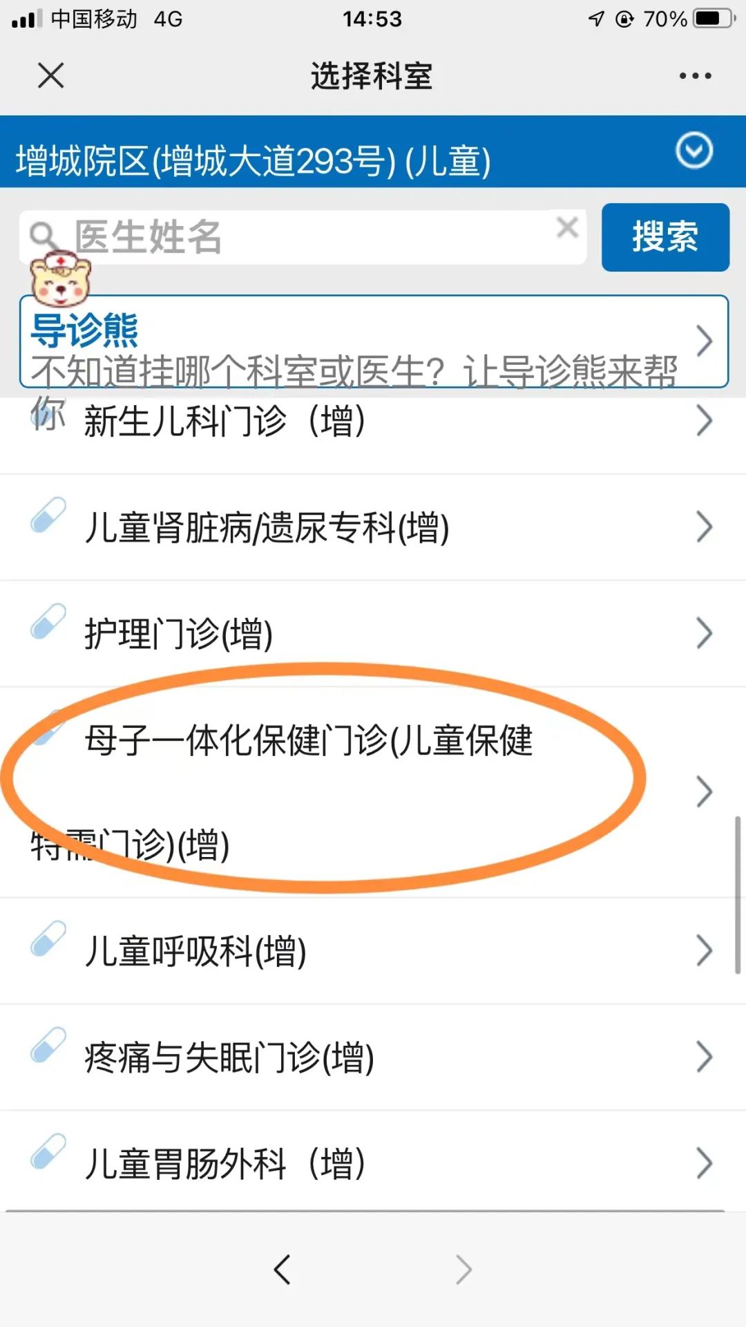 5. 科室选择“母子一体化保健门诊”。