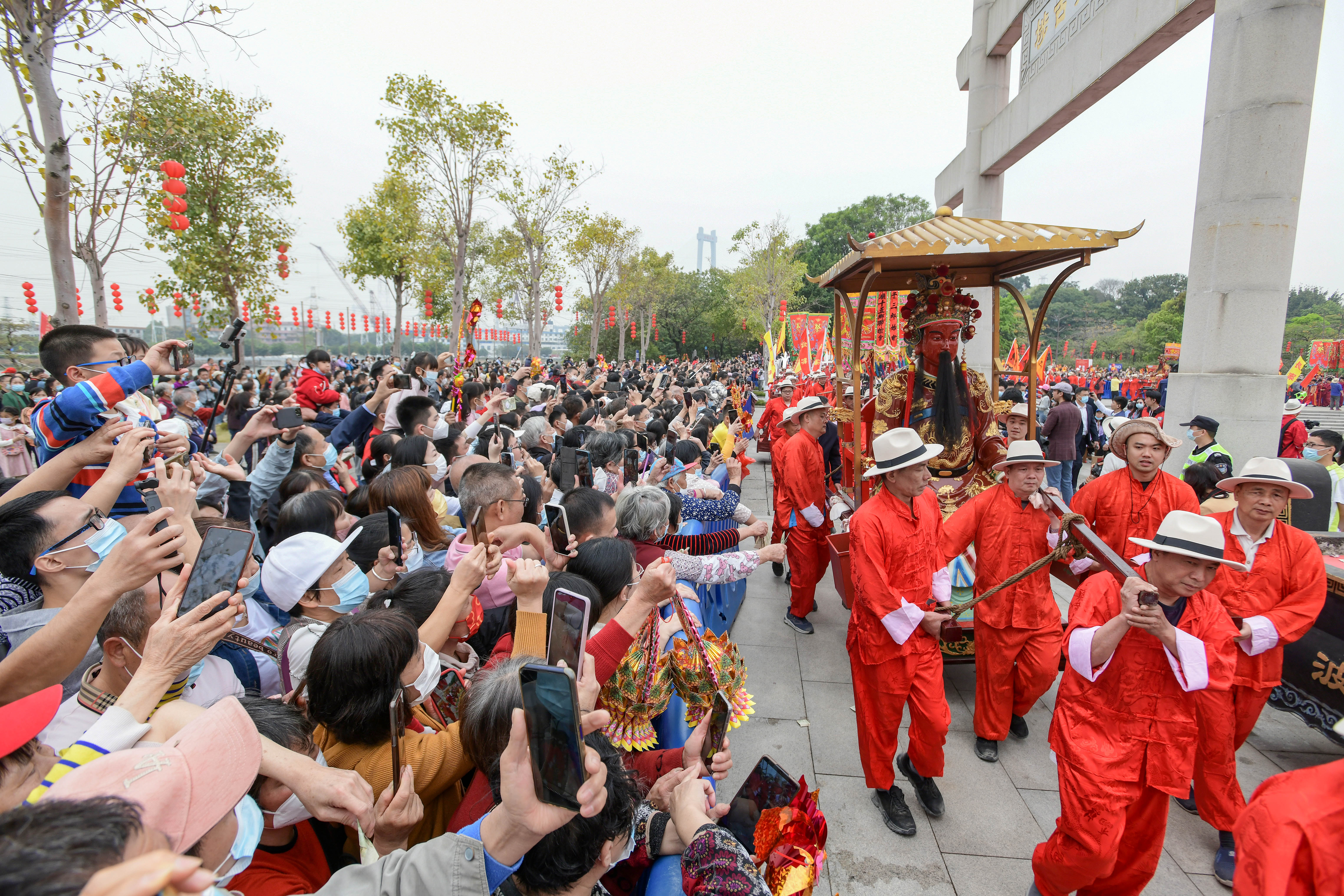 People try to capture a scene of one of the ceremonies of the Boluodan Temple Fair on Mar. 4, 2023. (Photo by Yang Yaoye/Guangzhou Daily)