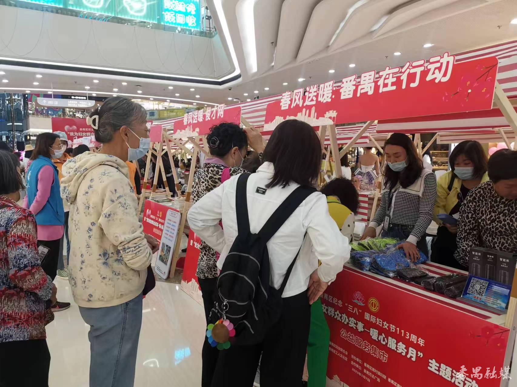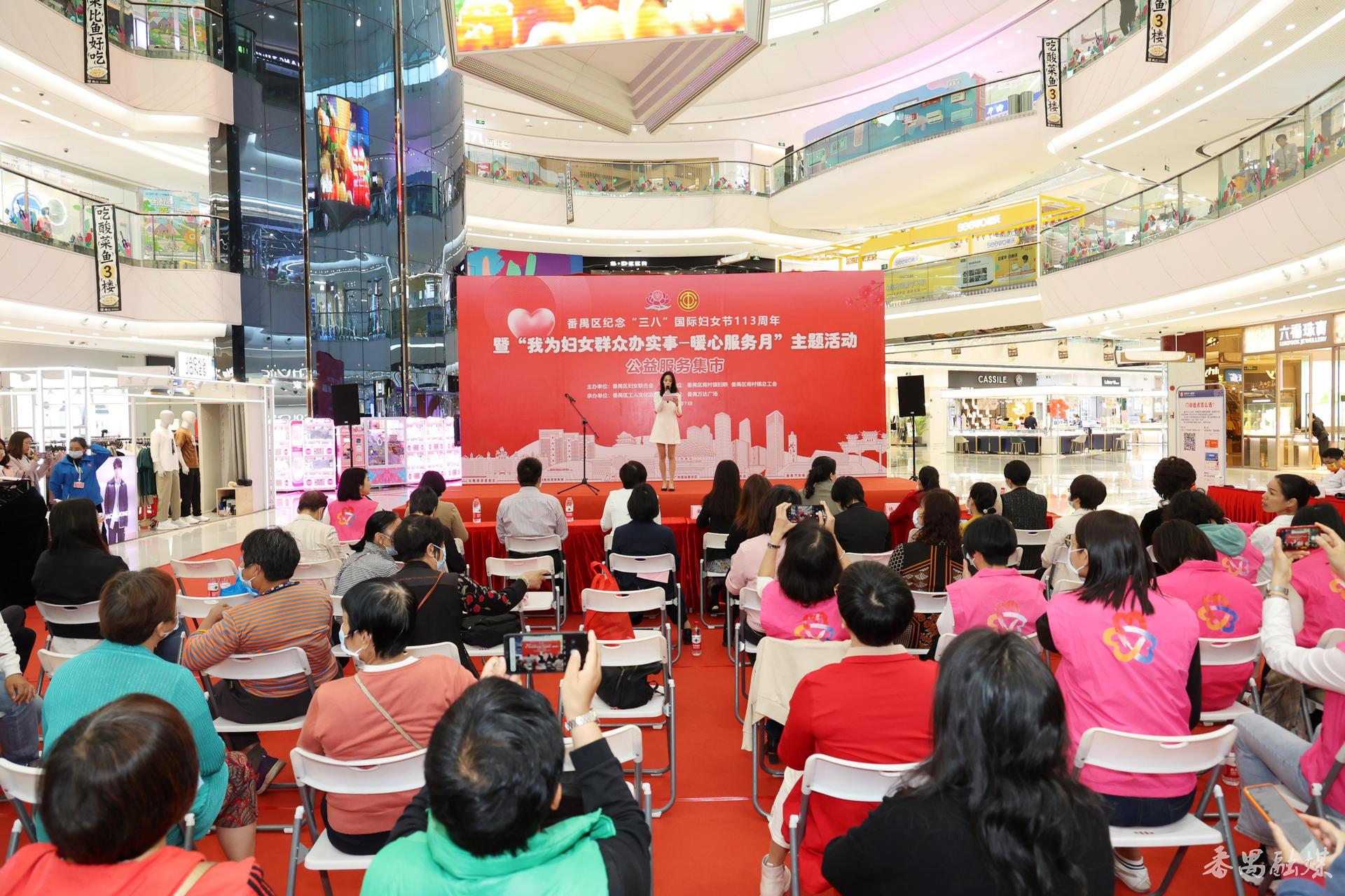 3月7日,番禺区妇联联合南村镇妇联、南村镇总工会在番禺万达广场举办番禺区纪念“三八”国际妇女节113周年暨“我为妇女群众办实事—暖心服务月”主题公益服务集市活动。区妇联副主席黄朝晖,区妇联挂职副主席关宝谊,南村镇副镇长、妇联主席赵瑛等相关负责人,以及区各级妇联组织代表等参加活动。