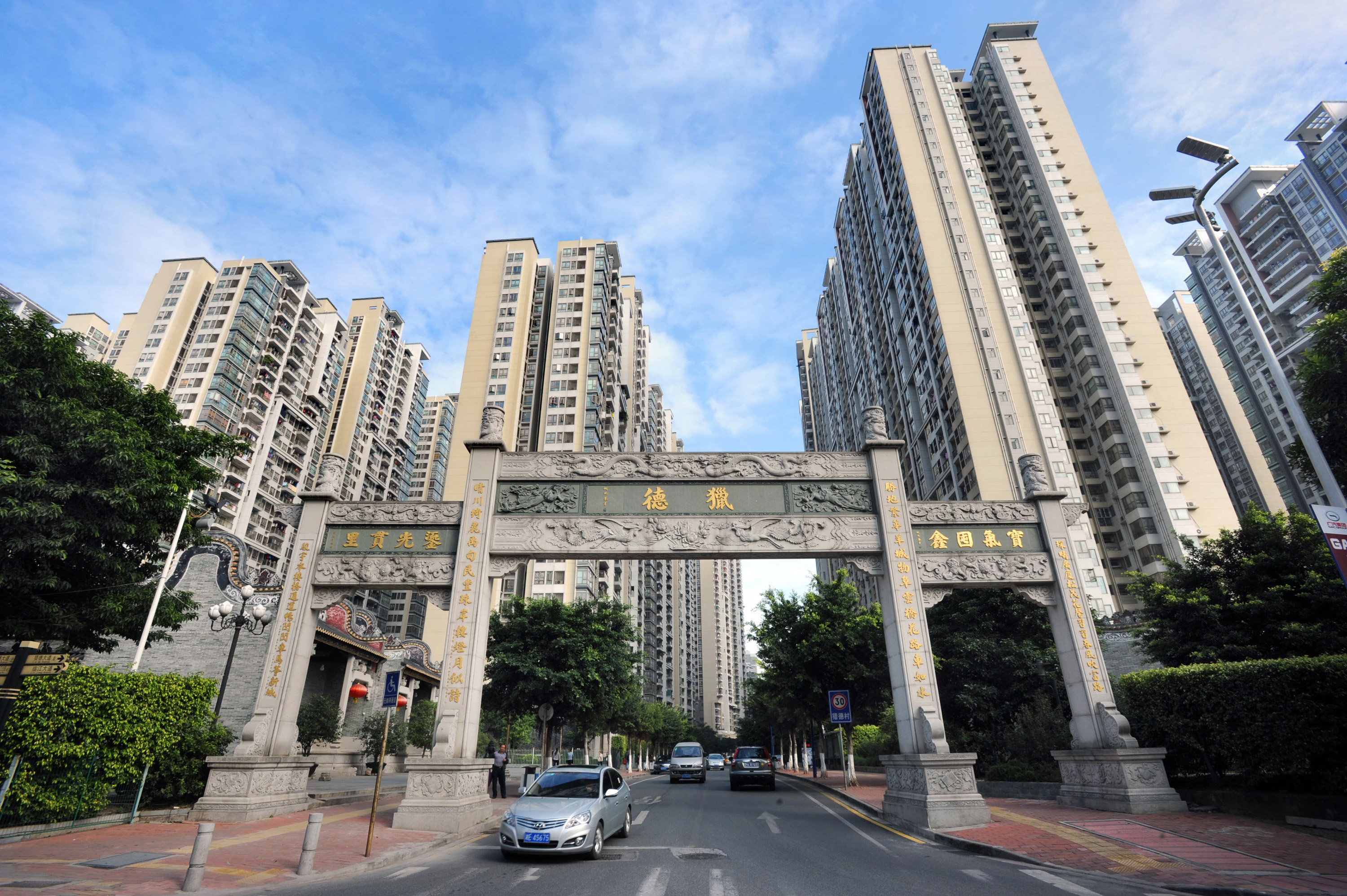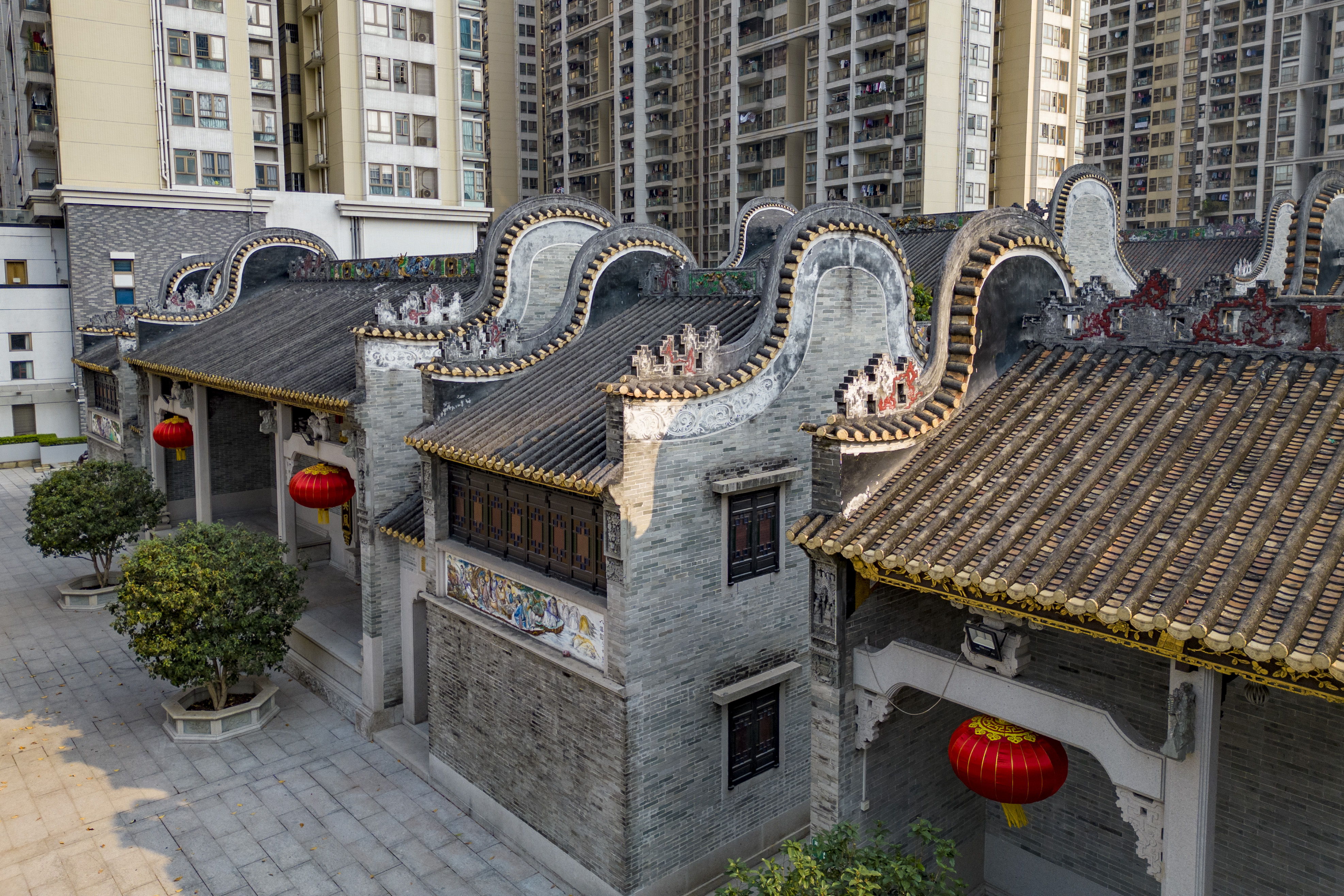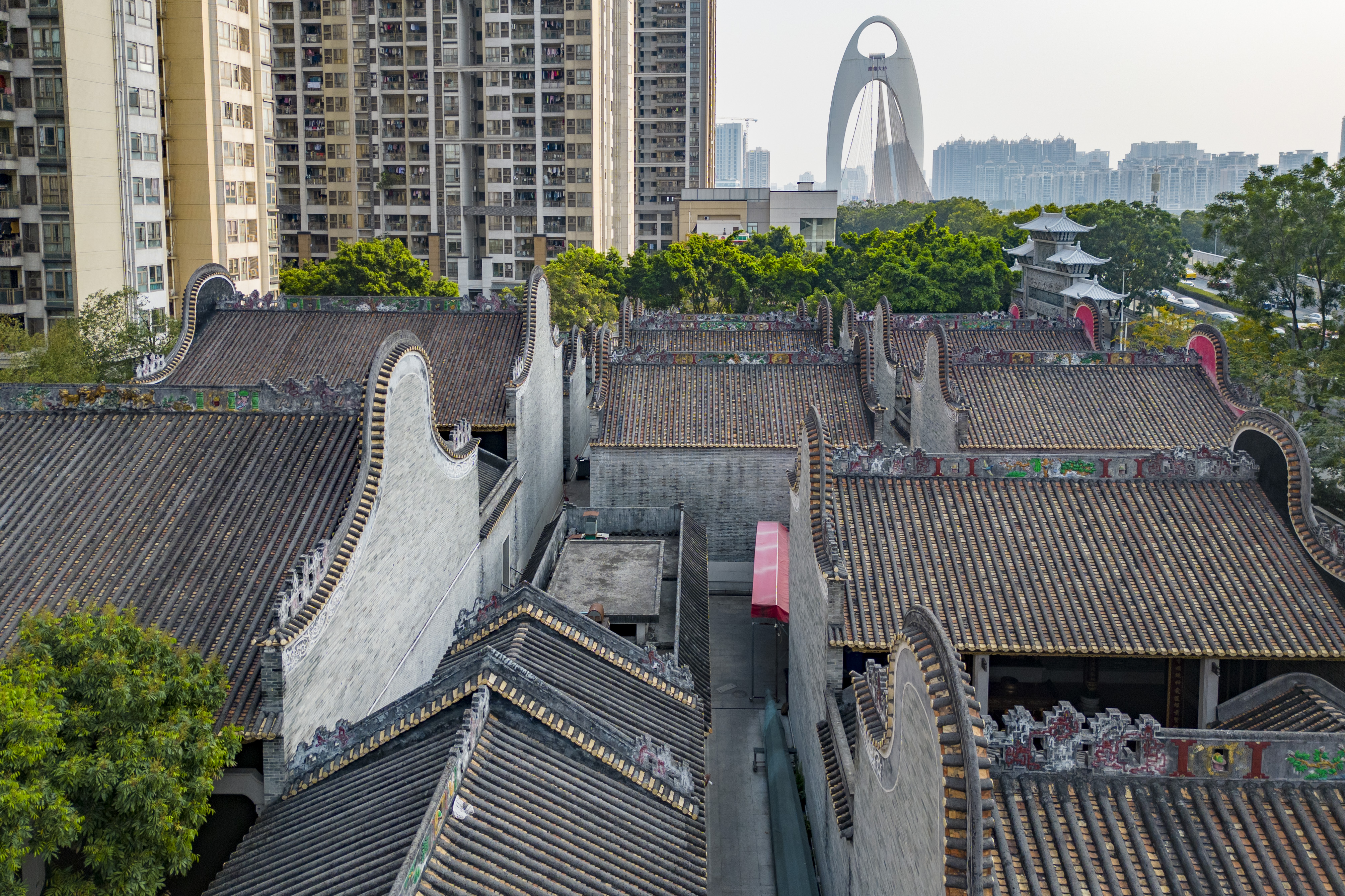 猎德村里的栋栋高楼与祠堂群。