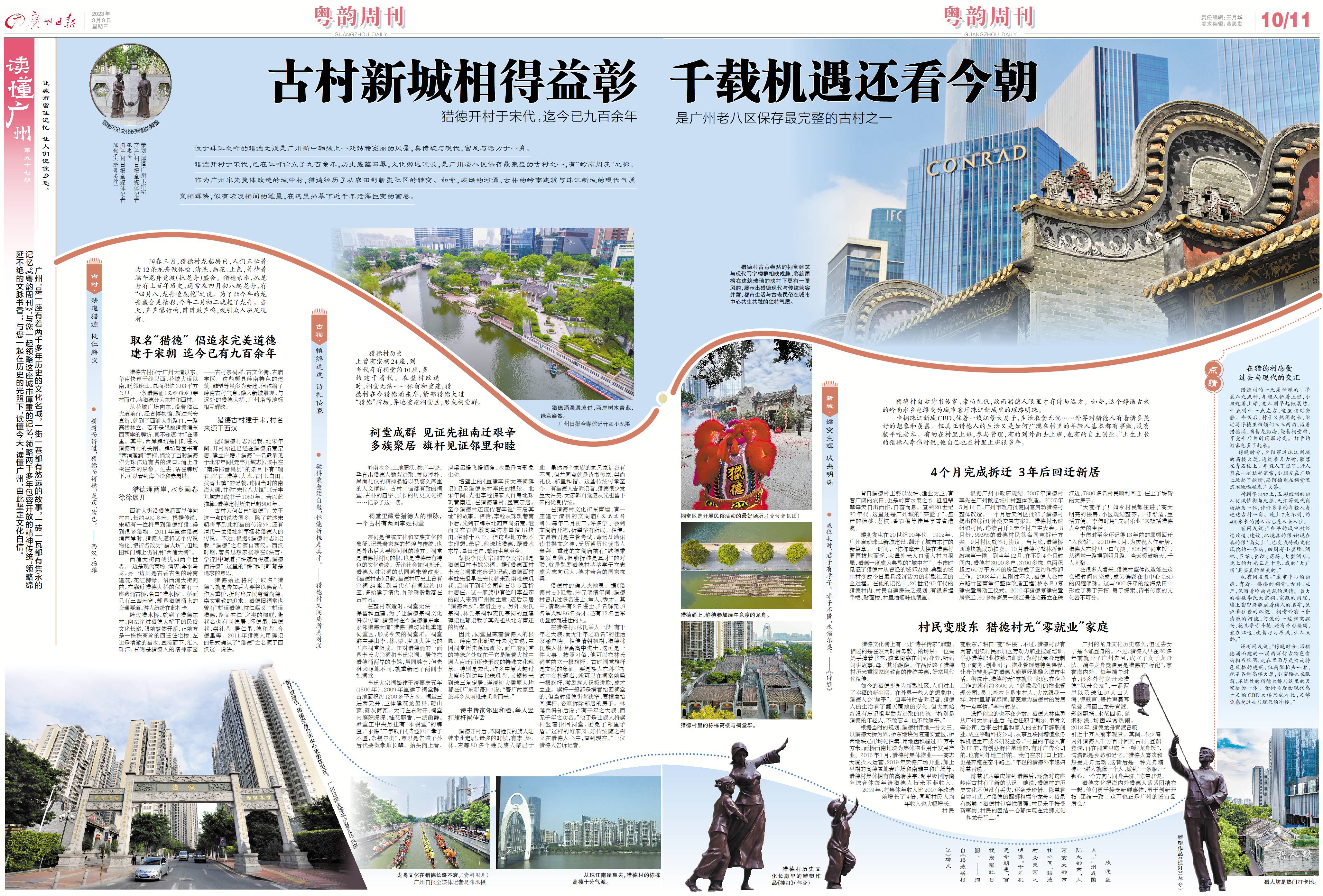 猎德村自古诗书传家、崇尚礼仪,故而猎德人眼里才有诗与远方。如今,这个静谧古老的岭南水乡也蝶变为城市客厅珠江新城里的璀璨明珠。