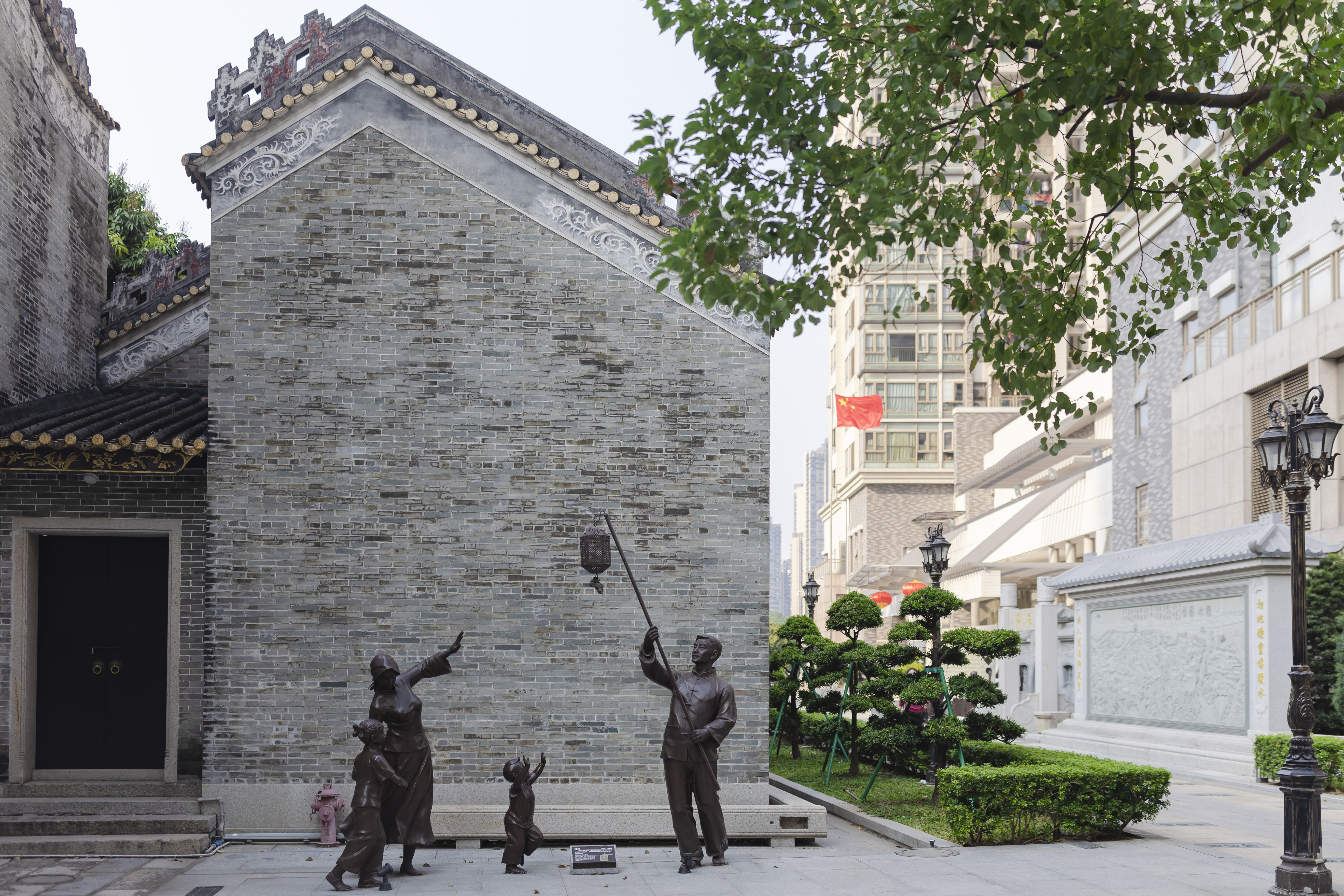 猎德村历史文化长廊里的雕塑作品《挂灯》。