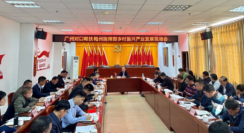 近日,广州对口帮扶梅州指挥部(以下简称:广梅指挥部)在梅县区丙村镇召开乡村振兴产业发展现场会。现场会由广梅指挥部主办,丙村镇帮扶工作队、丙村镇政府协办,邀请广梅指挥部领导,广州市纪委监委派驻广梅指挥部纪检监察干部,各县(市、区)对口帮扶工作队队长,驻镇帮镇扶村工作组组长、工作队队长参加。
