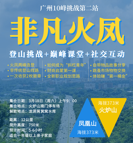 据主办方介绍,白云山首站攀登结束后,3月18日有“非凡火凤线”两峰连攀,更有“斜杠姐姐”带你体验财商启蒙第一课。后续活动精彩连连,街坊们赶紧扫码进群了解更多信息吧。