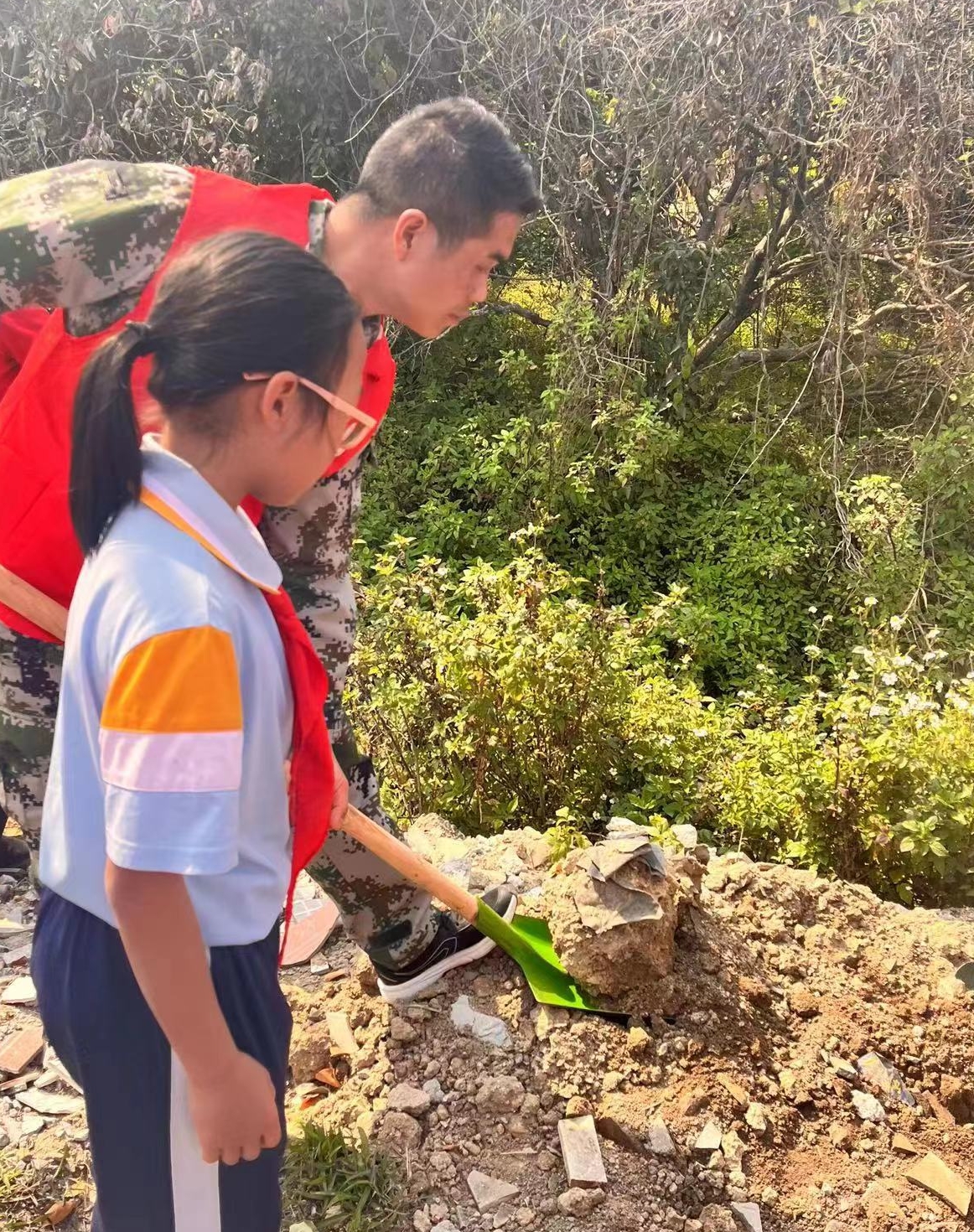 花东红棉老兵与少先队员一同开展植树活动。通讯员供图