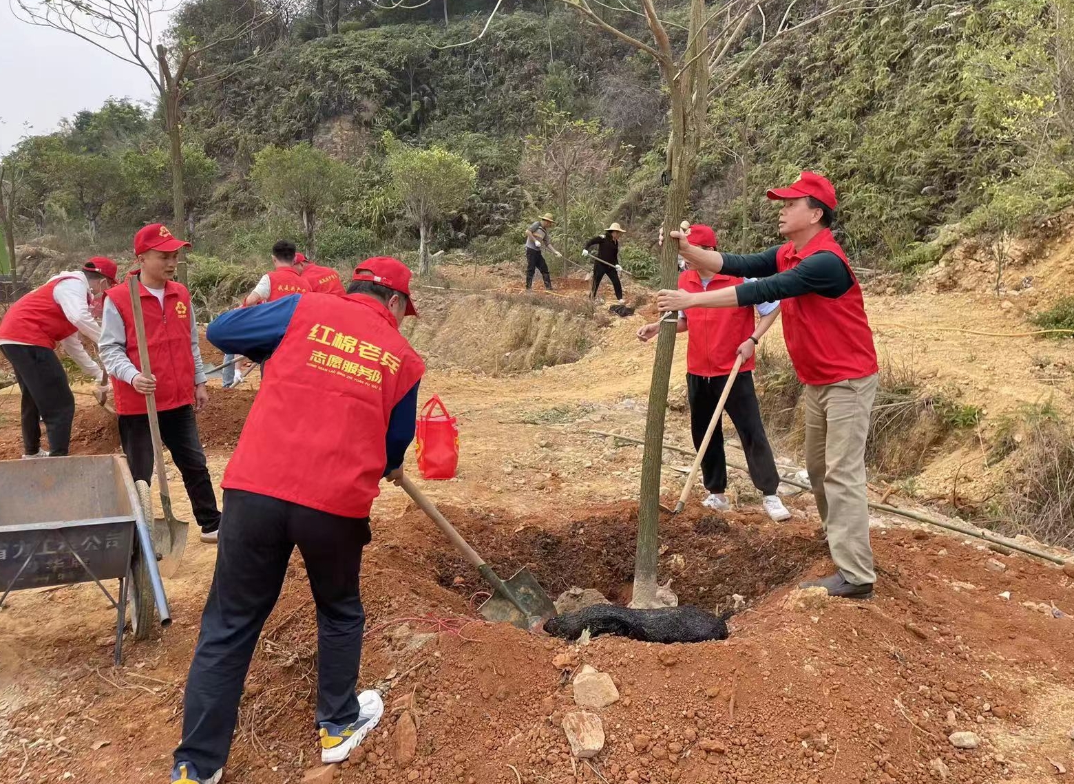 3月3日,在狮岭镇义山村新赤公路旁及义山牌坊公路两边,狮岭镇红棉老兵自带植树工具,和其他志愿者们挥锹挖坑、扶树填土、浇水……据统计,此次活动共种植黄花风铃木80余棵,老兵们用自己的实际行动,为“绿水青山就是金山银山”的发展理念,贡献退役军人力量。