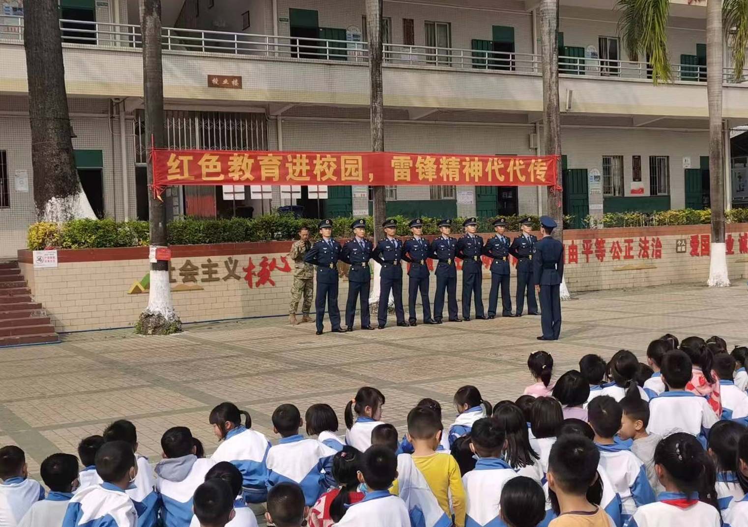 花山镇驻地部队官兵和红棉老兵在花城小学给学生们开展国防教育课。通讯员供图