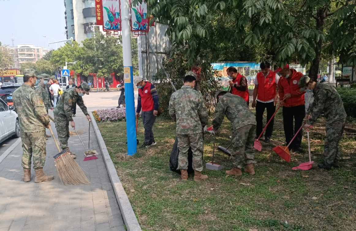 驻地部队官兵和红棉老兵在新华街、秀全街、炭步镇开展志愿服务活动。通讯员供图