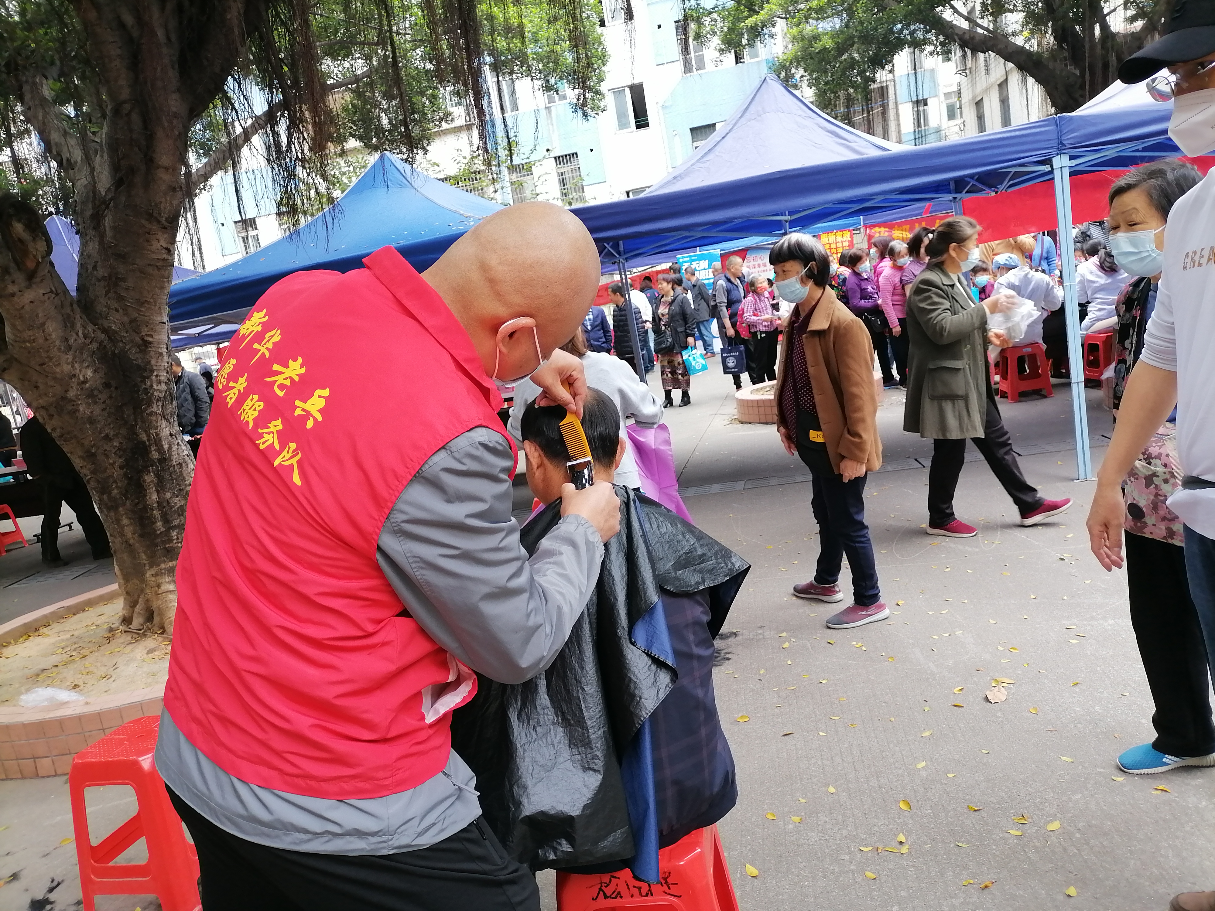 花都区红棉老兵化身为“托尼老师”为居民群众提供义剪服务。通讯员供图
