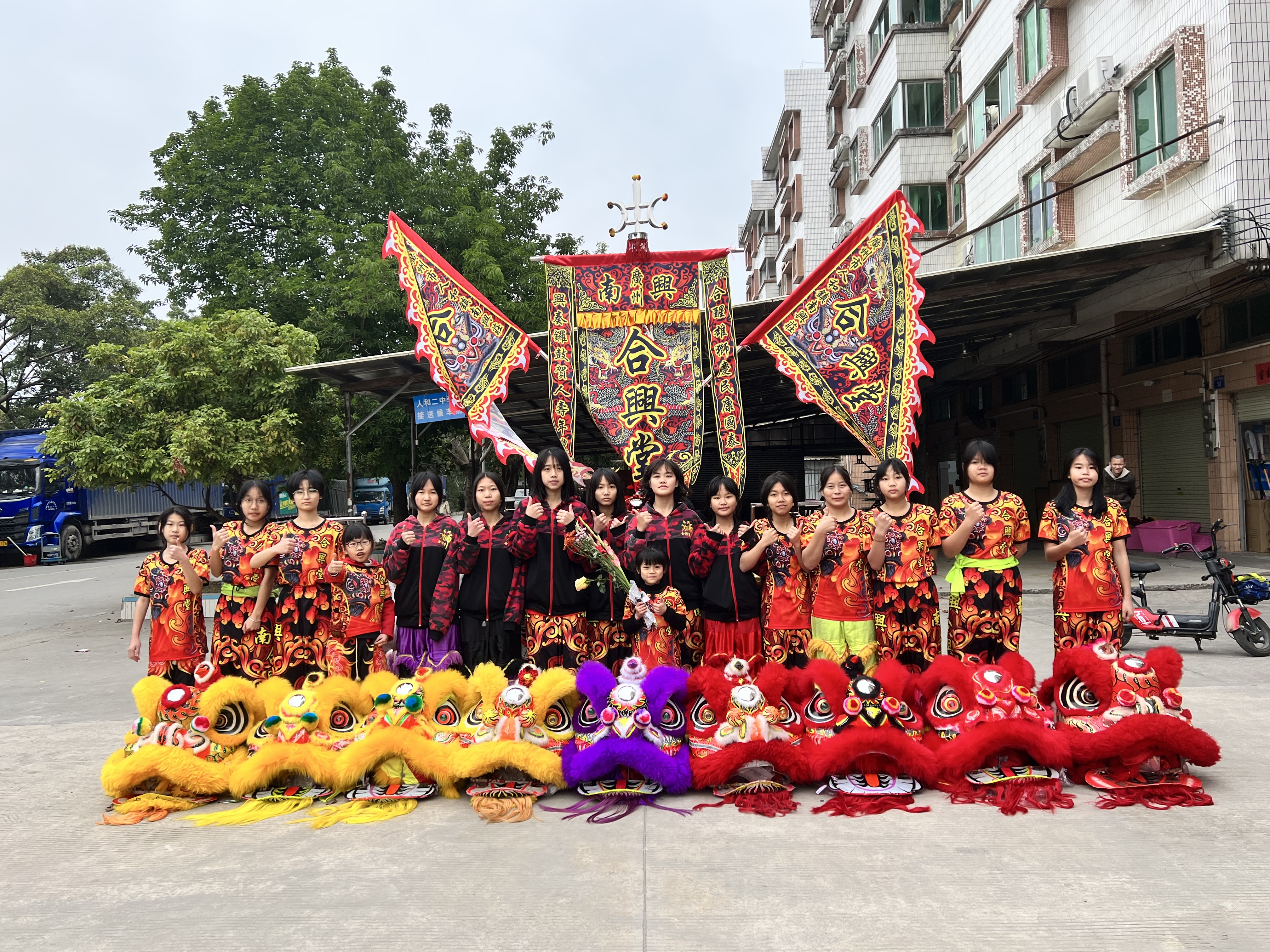 南兴合兴堂醒狮队是20世纪80年代成立的,“当时是因为村里面是杂姓,所以后来起名字的时候,就叫做合兴堂,意味着,百家姓氏,一起来把传统文化传承起来这个意思”,教练张哲亮告诉记者,“我们醒狮队从成立之初到2018年这段时间,都只是招收男队员去传承醒狮的。”而2018年,有6位女孩子加入了醒狮队。当时,余卫钊、张哲亮两位教练合计着,孩子们愿意学醒狮,自己又愿意教,那总是好的。而且,这6个女孩子当时表现都相当不错,所以就一直收下来了。