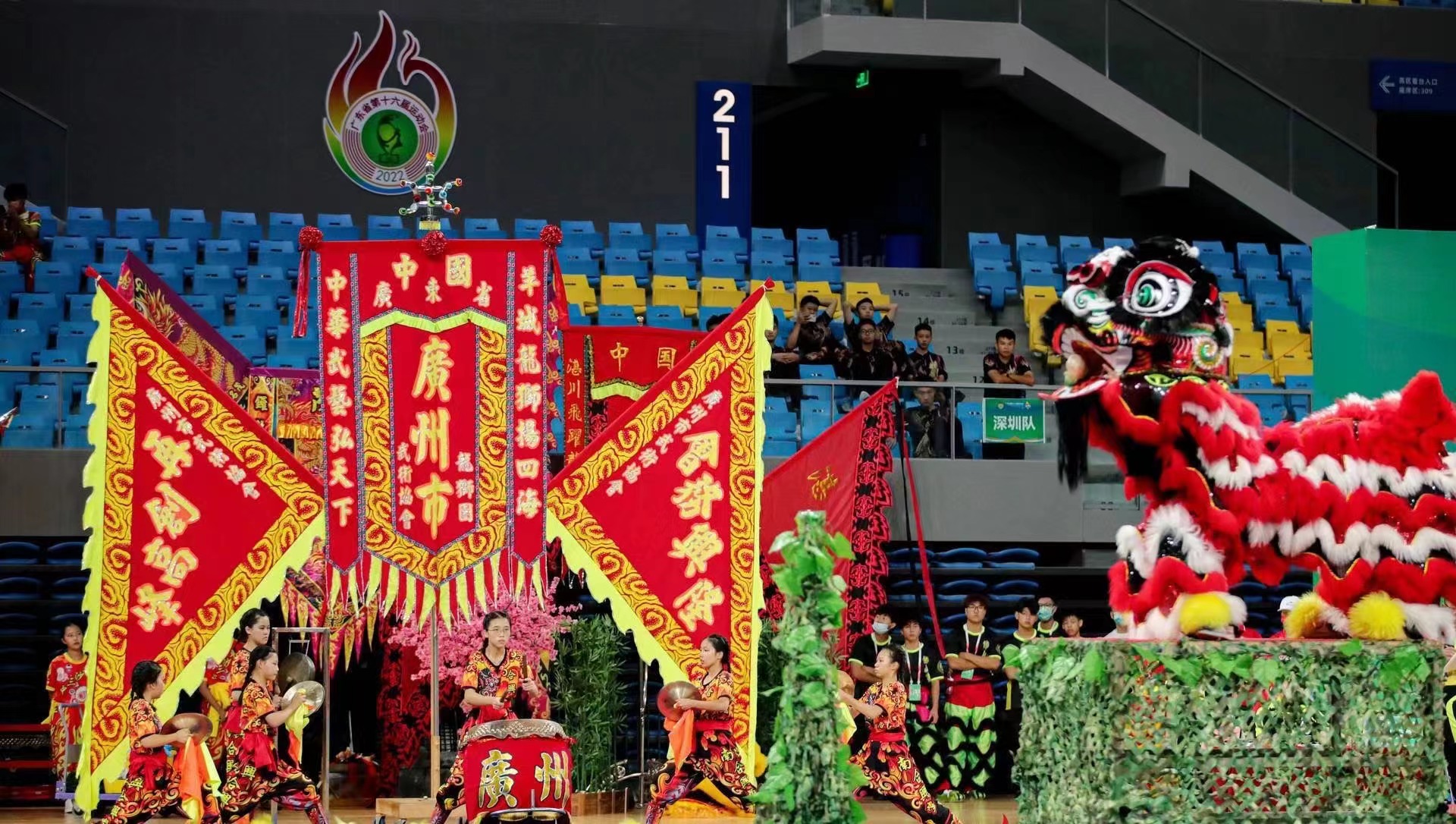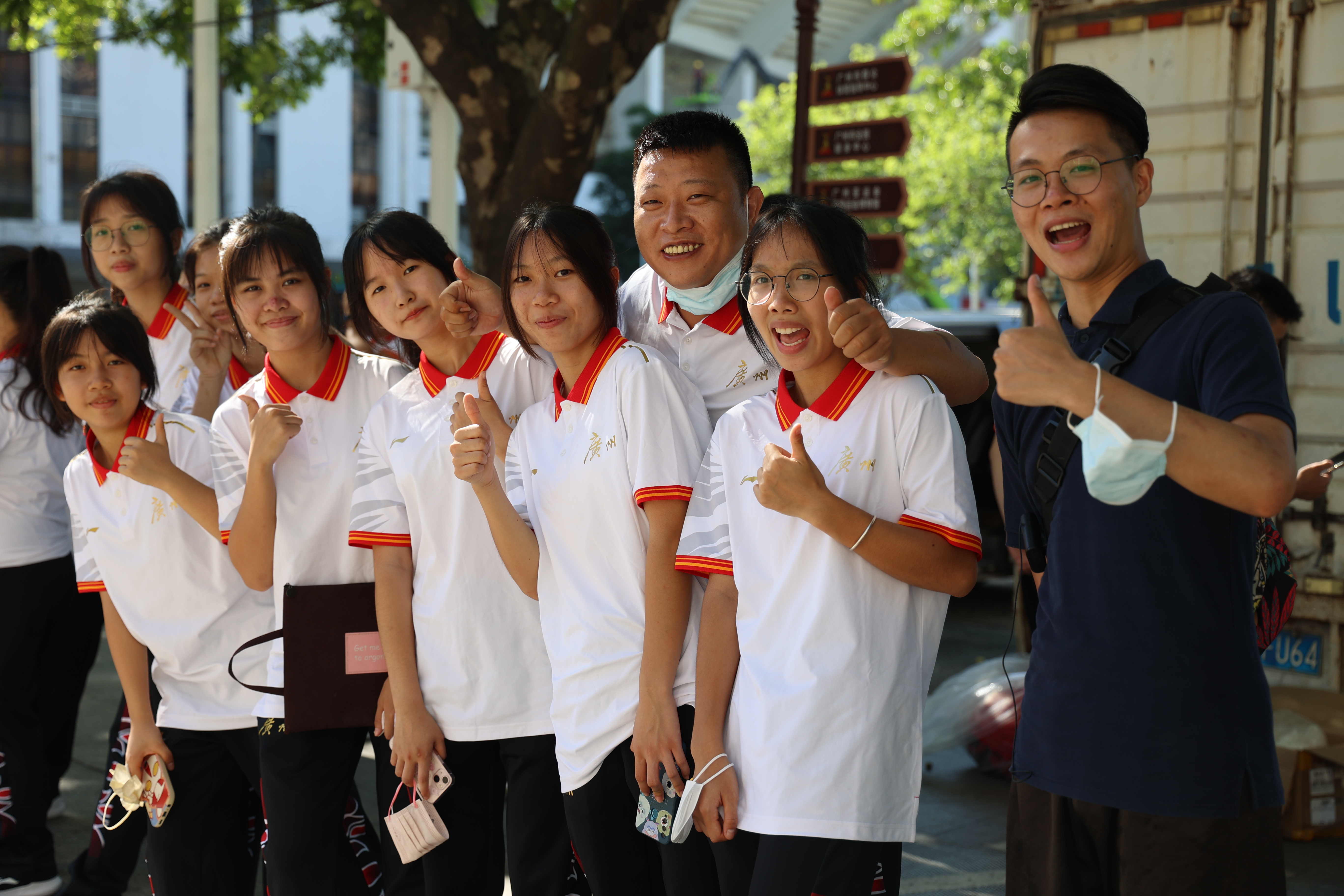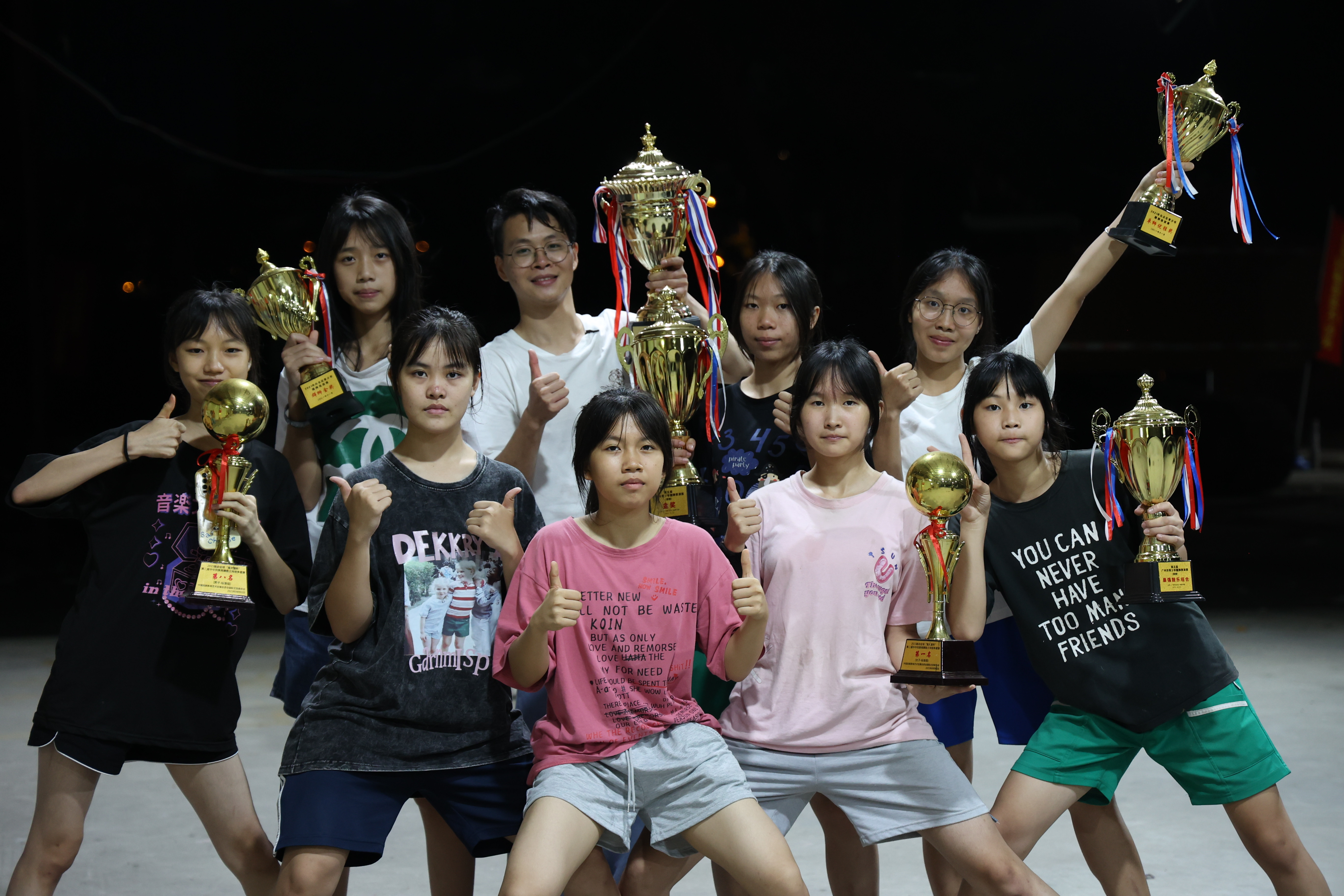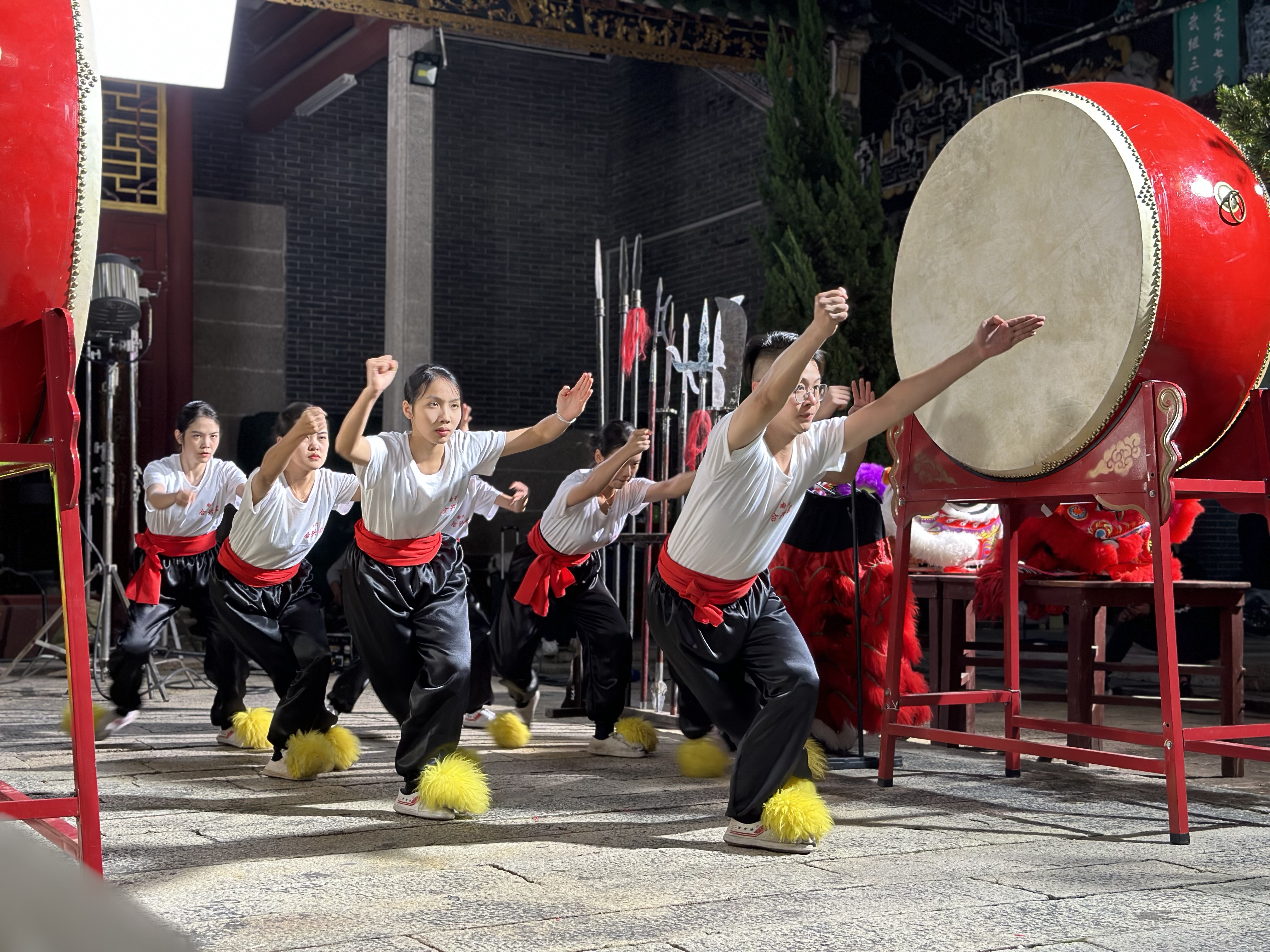 到了2021年的7月份,教练们觉得女队员训练了这么久,是时候到外面去走一下,打开视野。于是就去参加了比赛,一开始是白云区的比赛,“我们是跟别的男子队一起比的,是获得了同组的一等奖,就是第一名。”区赛获得了第一名之后,又被选拔到广州市的青少年比赛,也是在同组比赛里面获得了第一名和最佳鼓乐奖。