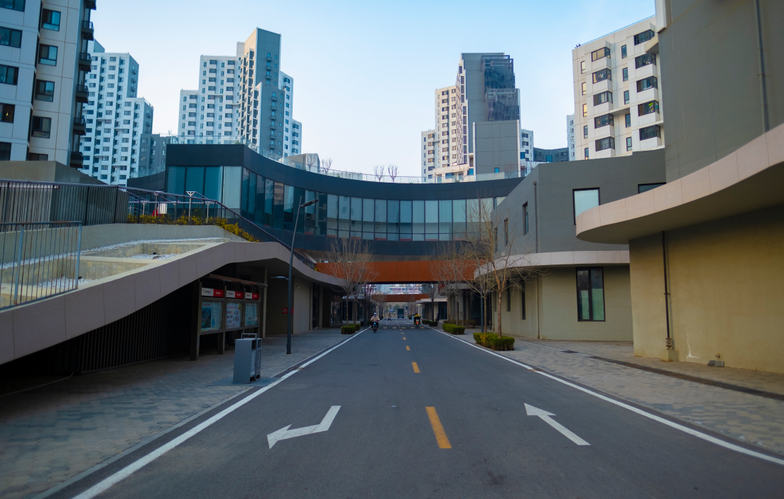 从城市道路左拐,没有围墙阻隔,也没见门禁,就直接来到商业区街。正好遇到一位物业工作人员,边走边聊,原来首层是个开放街区,将社区生活融入城市,作为商用和生活服务配套,有便利店、咖啡店、餐厅、幼儿园、书店、社区卫生服务中心等。