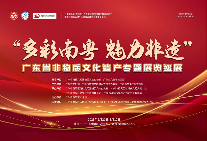 其中,非遗宣传展示志愿服务活动以“多彩非遗魅力行”为主题,在全省选取10个岭南书院、新时代文明实践中心(所、站)作为服务点,通过在每个服务点举办“多彩南粤 魅力非遗”广东省非物质文化遗产专题巡展,配套实施“岭南非遗使者”百名义务讲解员培养活动,传播优秀传统文化,提升群众文化自信。