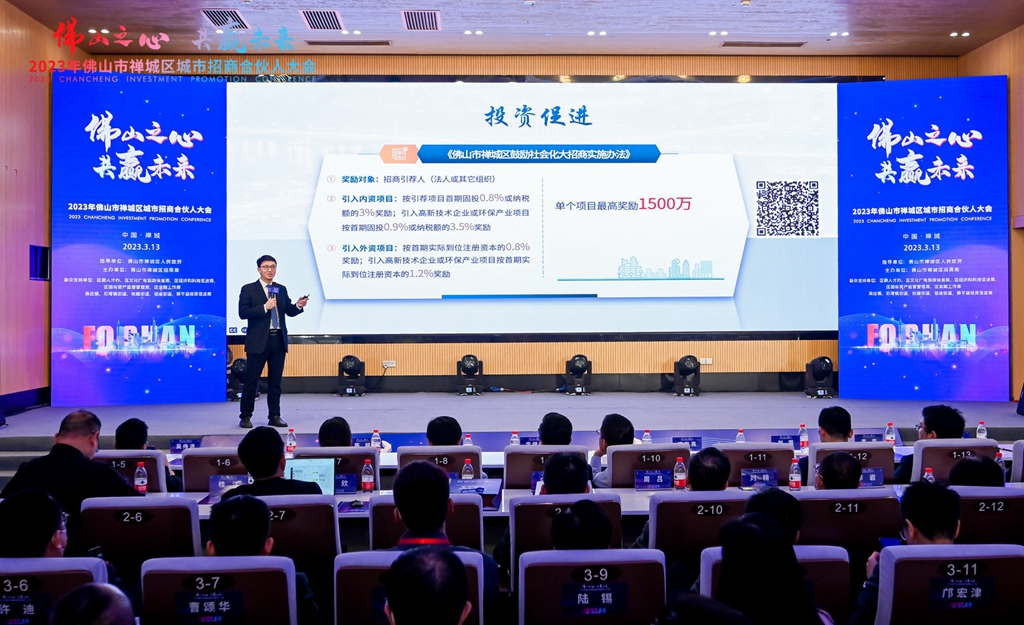 禅城区招商局局长李有亮表示,这次会议是为响应3月10日召开的佛山市2023年企业家大会,向所有商协会和中介机构广发英雄帖,向外界传达禅城想要加深、做实政企互动,合力打造“正正叠加”的经济高质量发展最优路径。同时,旗帜鲜明地向外界释放禅城区要重返制造业主战场的强烈信号,禅城区会以最好的资源、最大的诚意、最重磅的政策支持制造业发展壮大,让投资者坚定进驻禅城、扎根禅城的信心。李有亮向全球的招商合伙人喊话:“欢迎国内外有资源、有实力的商协会、服务机构、个人与禅城建立招商合作伙伴关系。”