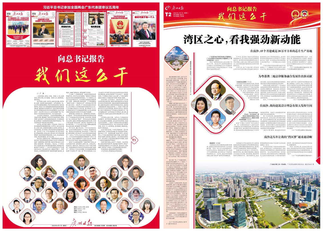 3月7日,推出《向总书记报告:我们这么干》16版特辑和报道H5,围绕总书记殷殷嘱托,追访总书记关心关怀关注的重点项目,采访各地区各领域基层干部群众,报告大湾区高质量发展成果,凝聚南粤大地牢记嘱托感恩奋进力量。
