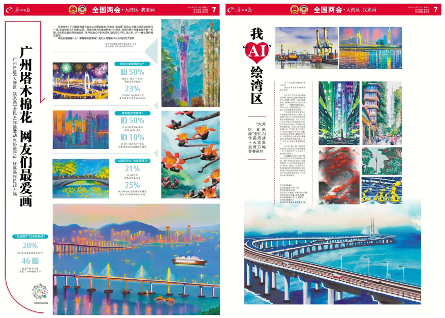 3月1日,启动“现代化 中国‘画’”大型全媒体报道和传播活动。和百度合作上线“大湾区 我来画”全民AI作画平台,邀请网友用AI画出心目中的粤港澳大湾区现代化图景,通过先进数字技术的加持黏附年轻受众,引导广大网友从亲笔绘画中感受广东加快推进高质量发展的美好图景,凝聚起把“施工图”转化为“实景画”的强劲力量。活动被人民日报客户端等央媒和十多家城市党报新媒体平台转载。