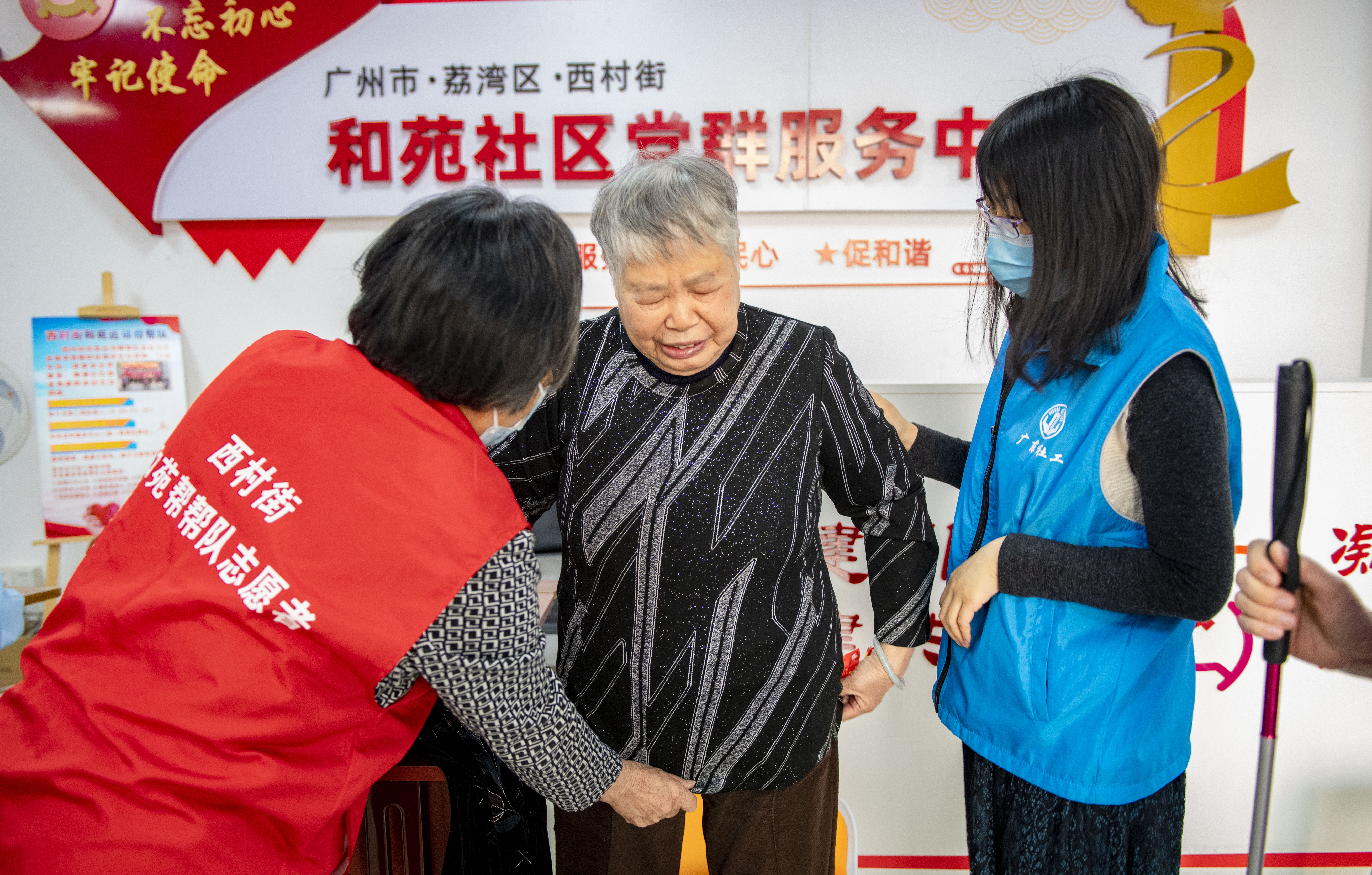 西村街社工站主任刘青霞介绍,针对视障长者对新社区周边环境资源了解较少、休闲娱乐活动单一、社会互动缺乏的情况,近年来,社工站联合帮帮队开展了系列“漫步西村”活动,由帮帮队队员“一对一”带领视障长者走访辖区内的增埗公园、西村街政务服务中心、社区卫生服务中心等,帮助视障人士增加对周边重要生活场景和公共服务的认识,扩大他们的活动半径,便利、丰富他们的生活。