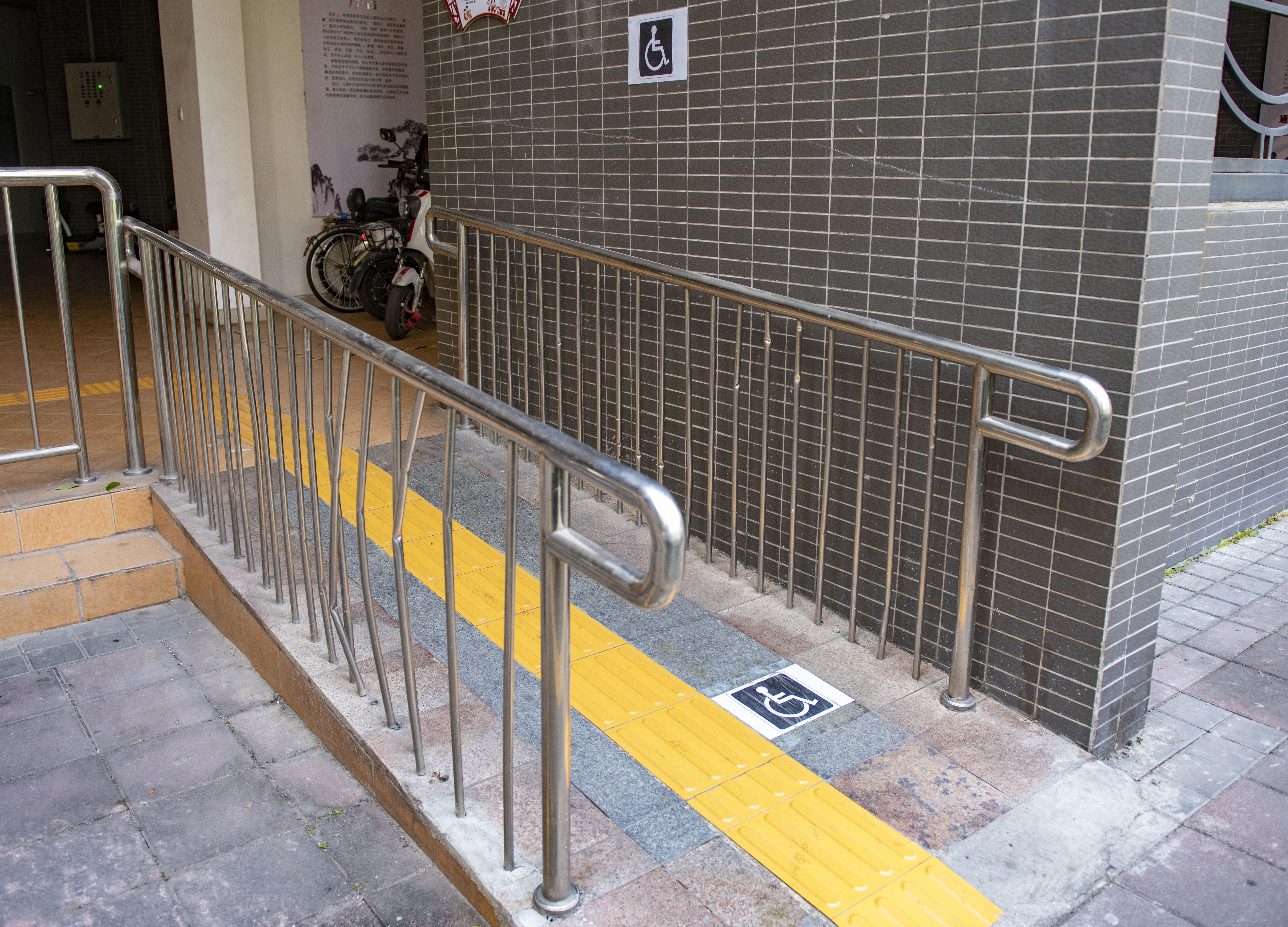 邓映玲和同事大为触动,由此拉开融入服务第二步。如何保障他们下楼以及在社区公共空间的安全?铺设盲道,上坡处安装扶手,电梯每个楼层按钮上配备盲文,配备达到楼层的语音播报……一系列硬件的改造迅速开展,无障碍设施、导盲设施等完善起来。