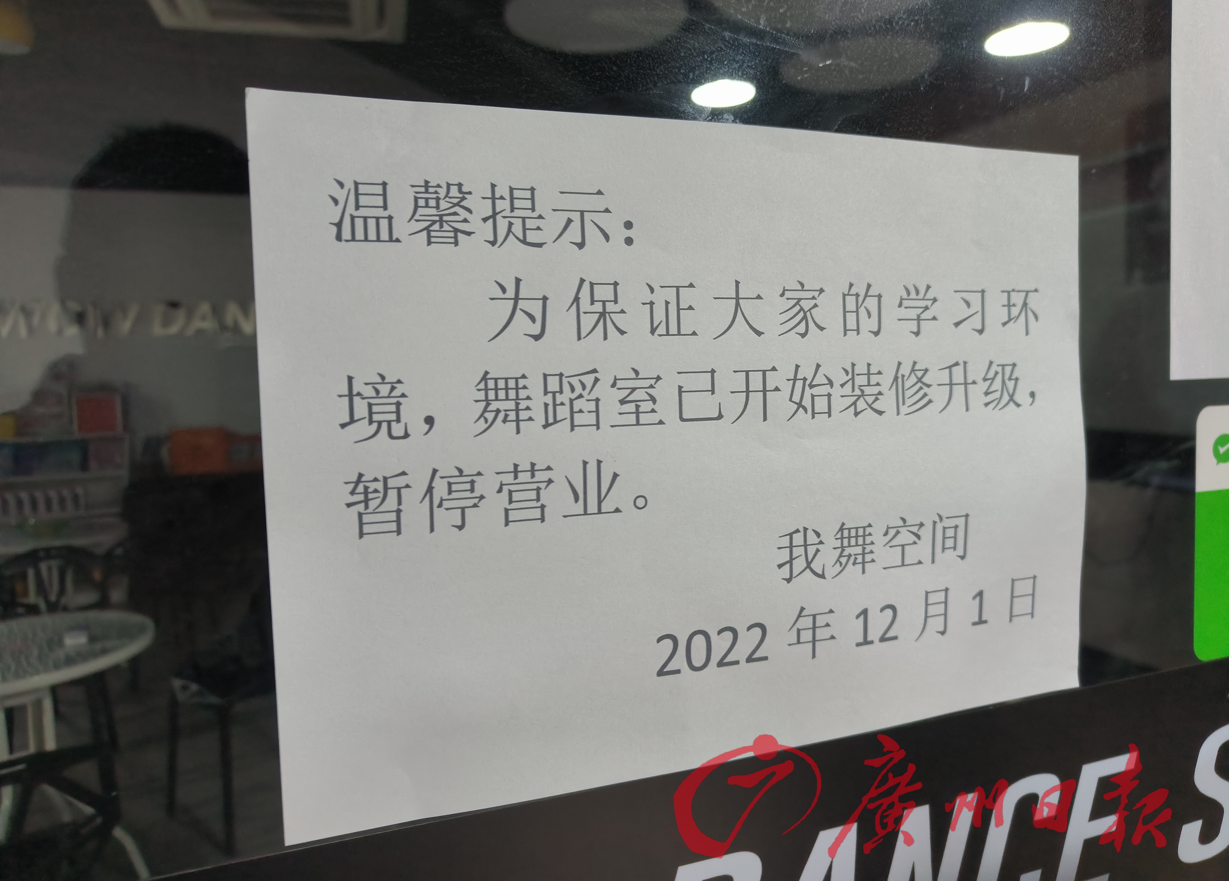 微信群被解散后,学员们感到非常不对劲,于是跑到大良店所在地,结果发现大门紧锁、人去楼空。2022年12月1日,“我舞空间”给大良店学员的“温馨提示”称,为保证大家的学习环境,舞蹈室已开始装修升级,暂停营业。记者查询获悉,佛山市我舞空间舞蹈培训有限公司是“一个专注教学与IP打造的网红基地”。