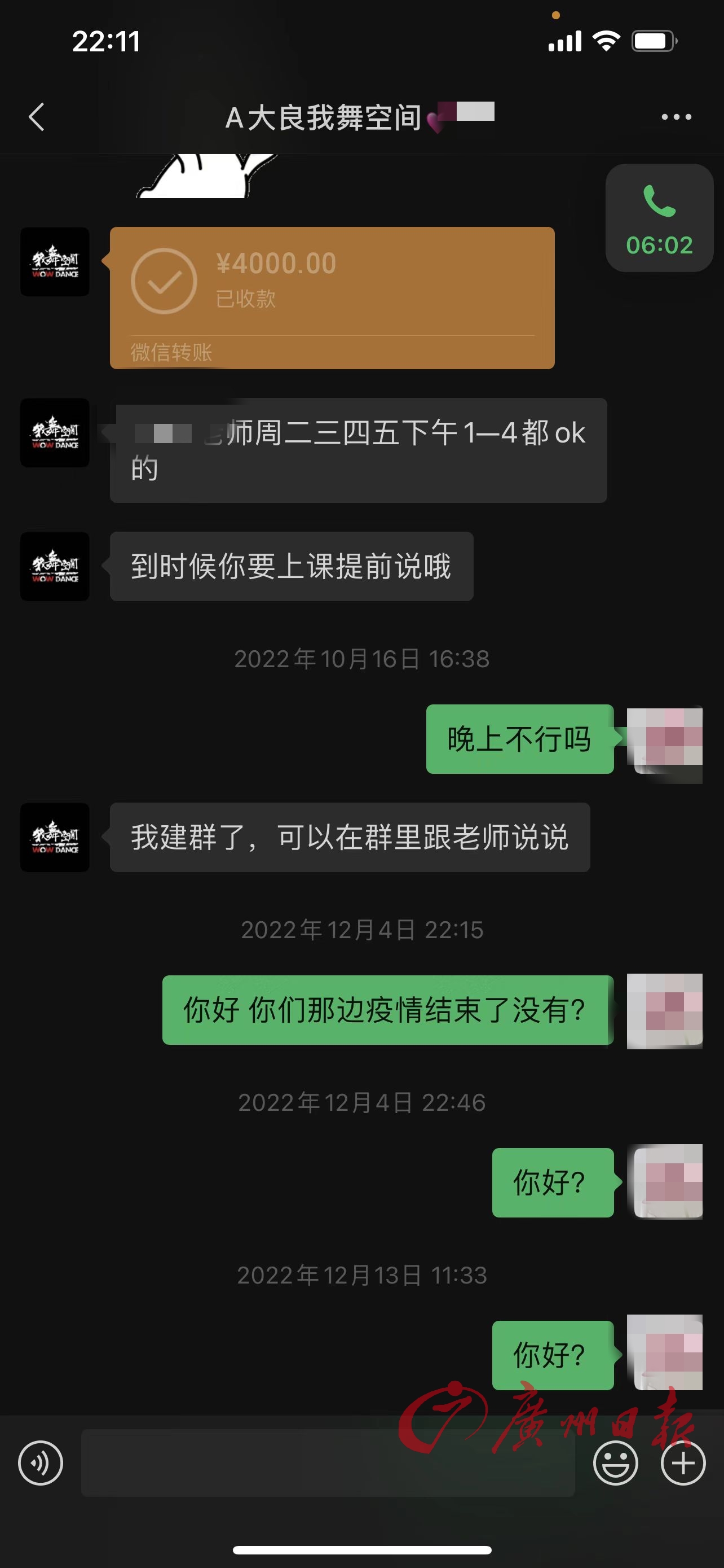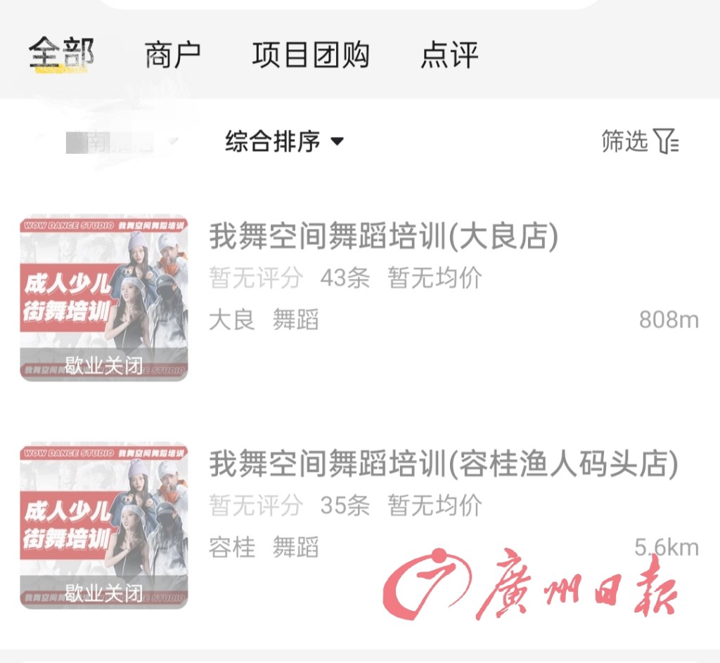 同样报了舞蹈班的还有郑小姐。去年10月,她在美团平台看到大良店的信息,并打电话咨询。她告诉记者,该品牌店在佛山舞蹈界有一定的知名度,销售称是品牌店。于是,她当时就通过微信转账4000元买了十节舞蹈私教课。然而,在接下来的一个多月后,郑小姐的约课经历却颇为波折,“他们不是说老师没有时间,就是说教室不够,总之一节课都没上。”而去年12月后,她在与销售和私教的三人小群发消息,却再没收到过回复。目前,大良店在美团上已显示“歇业关闭”。