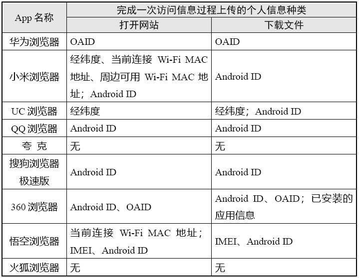 近期,中国网络空间安全协会、国家计算机网络应急技术处理协调中心对“浏览器类”公众大量使用的部分App收集个人信息情况进行了测试。测试情况及结果如下: