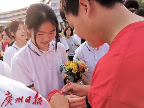 老师给学生系上励志祝福红手链