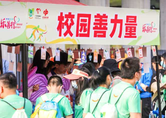 当乐善行活动启动,爱满童心队又一次启动劝募行动,结合第二课堂分数要求,发动校园学生参与捐步。此外,为进一步传播宣传活动信息,爱满童心队还在校园内的高场线下摆摊,发放爱心盲盒,开展投圈和捏黏土游戏,吸引学生参与,没多久,已累计获得数千万步数支持,争取了超过3.6万元配捐。在乐善行活动当天,广东工业大学学生更是通过各种创意义卖方式筹善款、积步数,义卖物资很快就被“清空”了。