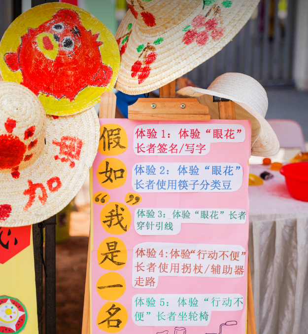 3月11日清晨,天空还是漆黑一片,广东工业大学社工系学生黄东楷已经和同学们从宿舍出发,带着“盲盒”“明信片”“翅膀气球”等义卖物资,前往从化区天人山水大地艺术园区(下称“天人山水”)。同样前往天人山水的还有从化区太平镇、鳌头镇社工站的邓思、李现红等社工。除用于义卖的扇子帽子,社工还带上了易拉宝、宣传海报,以及模拟长者生活场景的道具,通过互动体验阐述农村困难群体在家居遇到的困难。他们都想推动一些改变。