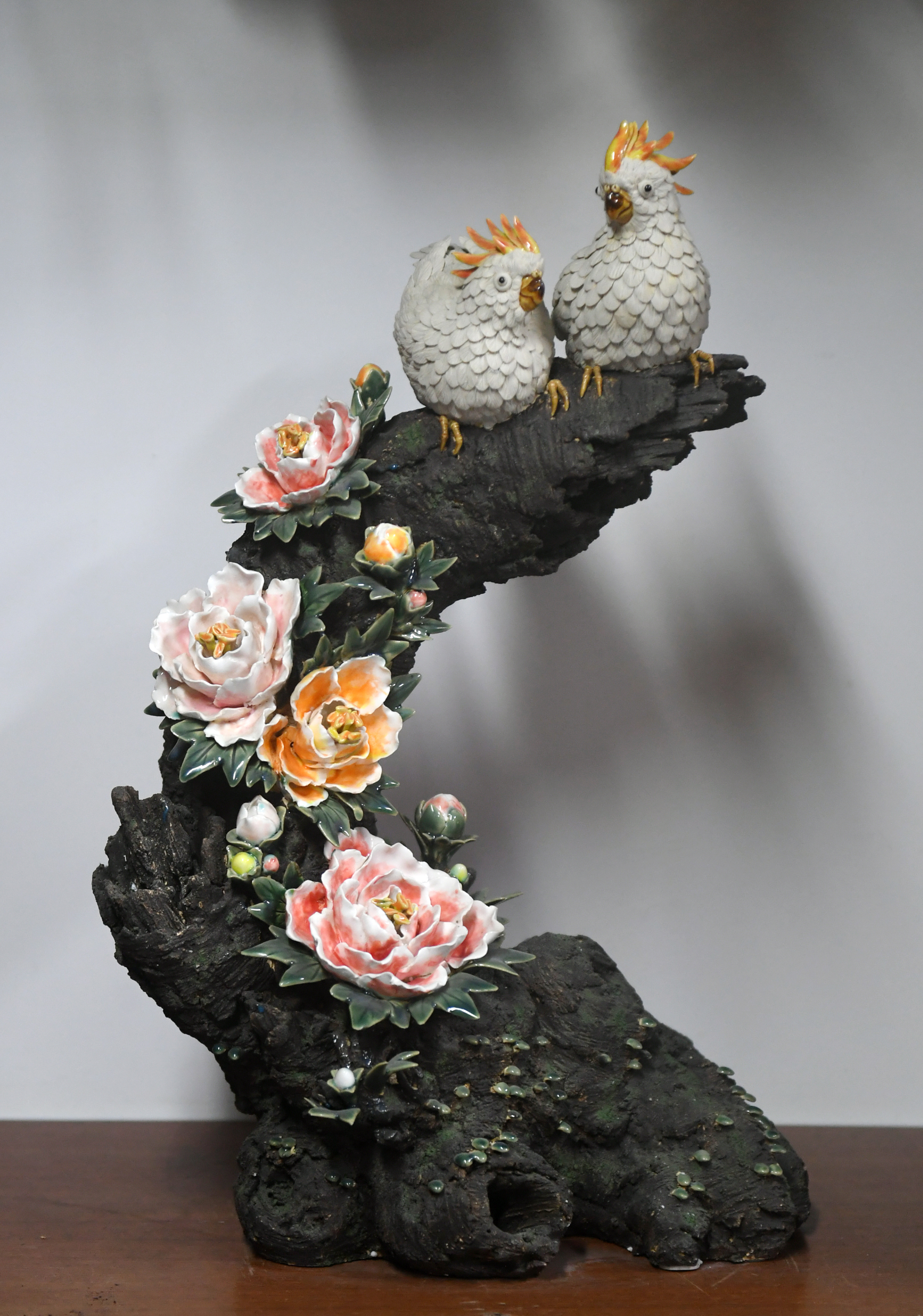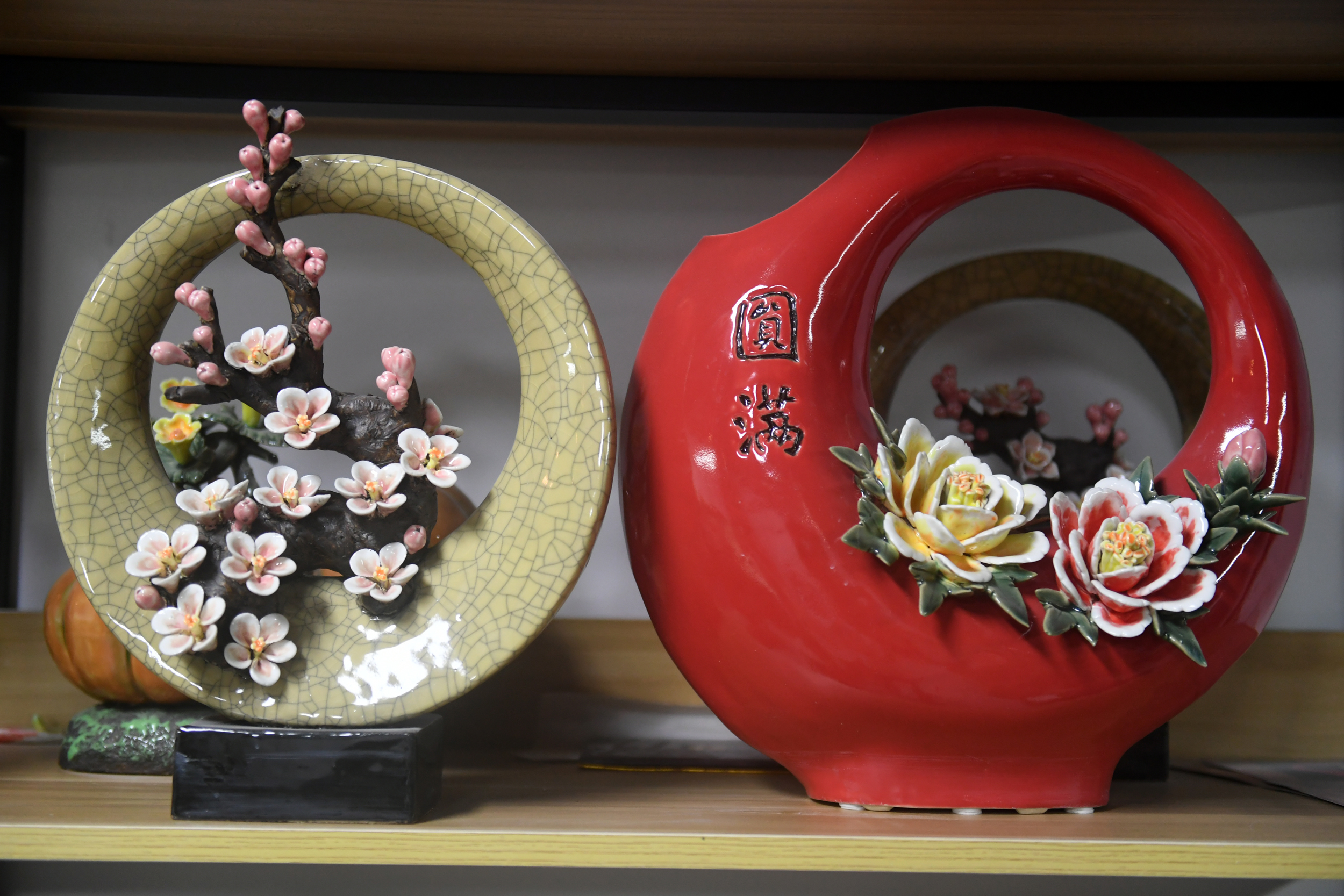 走进全伟雄的工作室,以瓜果、昆虫、植物和花鸟为主要题材的作品琳琅满目,意境丰富,细腻入微,特别是动物的神态、构图,颇得师傅霍然均真传。“这些作品年轻人比较喜欢,其空间装饰性能完美融入现代家居作为点缀。” 全伟雄把作品制作的过程拍摄记录,并制作成视频上传网络,获得不少点赞。平时的生活中,全伟雄是个“细节控”,在切水果时,他会观察水果的表皮纹理;在公园散步时,他会留意小狗的面容、神态、皮肤、毛发和比例;在上网时,他会浏览远镜头拍下的飞鸟图片,积累鸟类在颜色、羽毛、飞翔动作等方面的素材。时常琢磨如何用更生动活泼的形式表现陶艺,这已经成为他下意识的习惯,就是这一份在无声世界里的认真、纯粹和执着,成就了今日的全伟雄,他的作品《倾心图》被北京人民大会堂广东厅收藏。