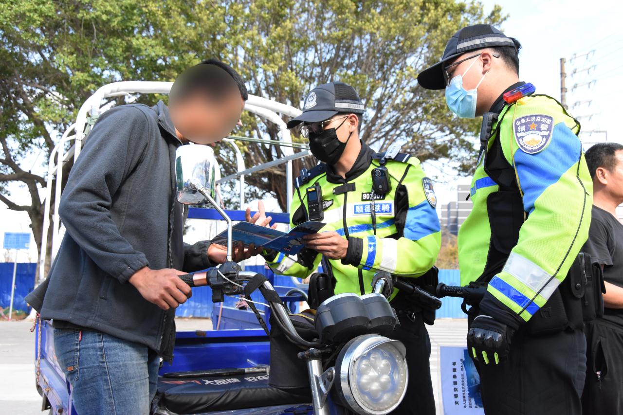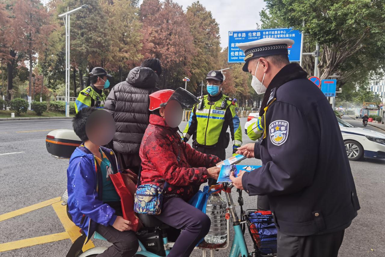 在查处的同时,宣传民警在现场设置交通安全宣传教育点,大力落实摩电“五选一”宣教活动,通过“佛山e骑士”观看视频、抄写法规、派发宣传单张等多种方式向交通违法驾乘人员讲解道路交通违法行为的危害,坚持处罚、教育、现场纠正并举,形成“严查、严管、严治”高压整治态势。