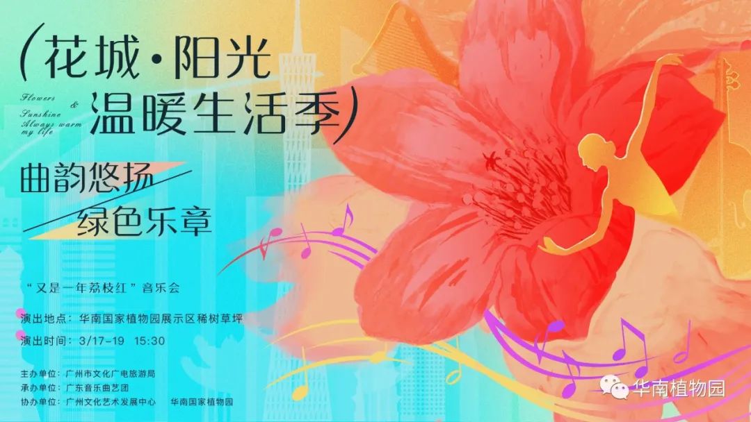 近日,记者从华南国家植物园获悉,作为“花城阳光温暖生活季”系列文艺活动的重头戏之一,由广州市文化广电旅游局主办,广东音乐曲艺团承办,广州文化艺术发展中心、华南国家植物园协办的“曲韵悠扬 绿色乐章——又是一年荔枝红”音乐会系列活动,自3月17日开始连续三天15:30在华南国家植物园户外大草坪(温室前稀树草坪)精彩上演。活动紧密围绕深入学习贯彻落实党的二十大精神,充分发挥文旅行业引领带动作用,致力于推动广州市消费市场复苏繁荣。