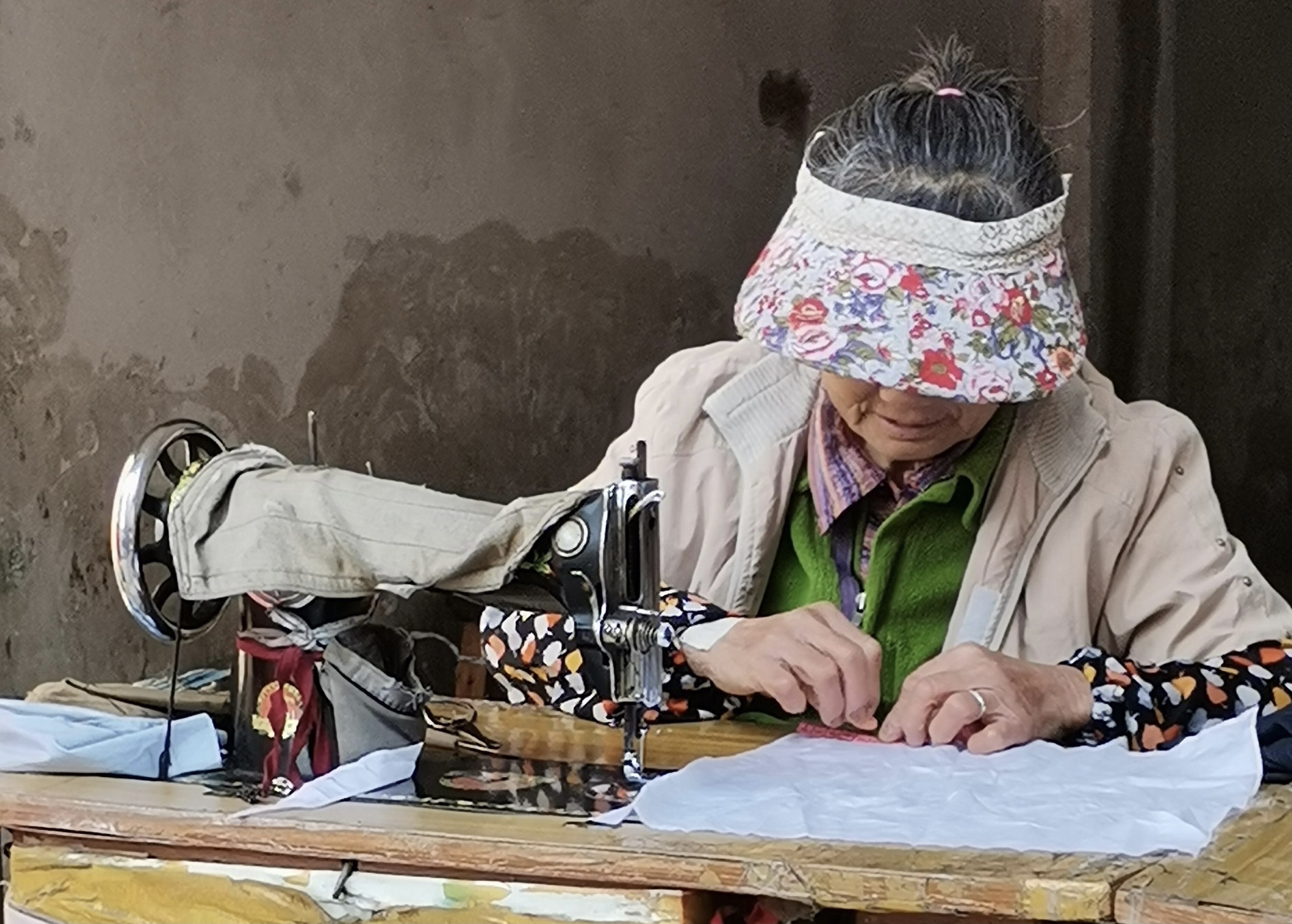 1986年开始,张阿姨就在村里当起裁缝,之后去过化龙一制衣厂工作,开过裁缝店帮人家做衣服、补衣服,没开店后就一直在这个楼梯口摆档到现在,一生的职业都与裁缝有关。