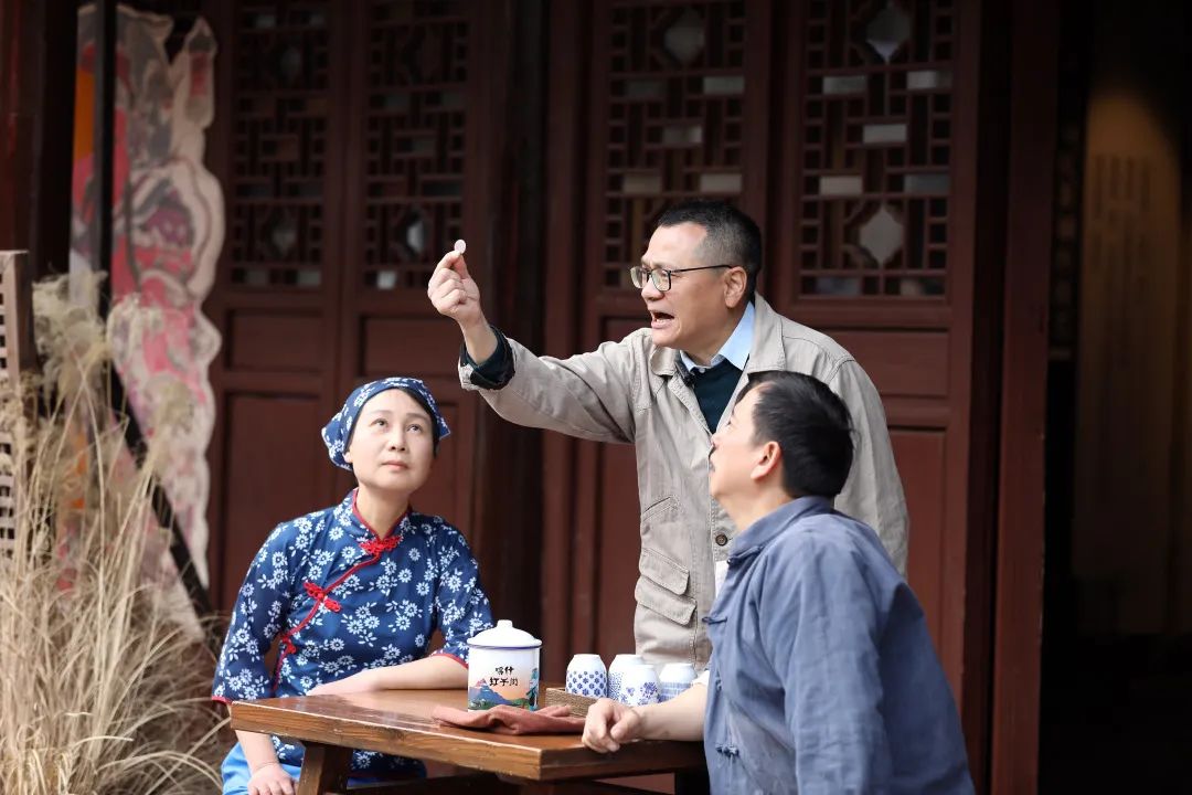 观众们刚刚入座,杭州著名主持人安峰带领团队惊喜亮相,他们表演了以《山河故人》为脚本的情景剧,表演幽默诙谐又不失深度,引得现场观众频频发笑的同时也沉浸在了浓浓的乡愁中。