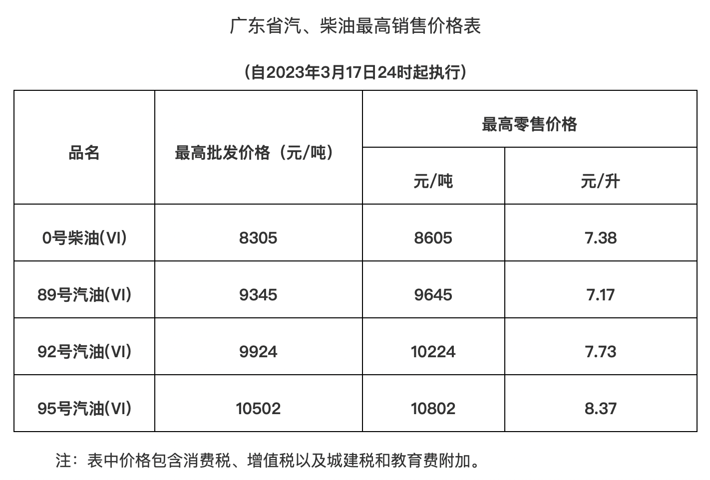 广东省油价如何调整呢?据广东发展改革委消息,即在现行价格的基础上,广东省汽、柴油价格每吨分别下调100元和95元。调整后,广东省成品油0号柴油、89号汽油、92号汽油、95号汽油最高零售价分别为8605元/吨、9645元/吨、10224元/吨、10802元/吨,折升价分别为7.38元/升、7.17元/升、7.73元/升、8.37元/升。