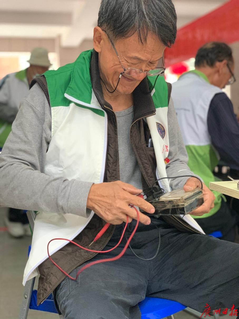 带上万能表、螺丝刀、“士巴拿”,拖着工具箱,召集“老”伙伴,出发!3月15日,一个风和日丽的日子,粤晖家电义修队在广东省老干部大学的一片空地上摆开了“家当”,开始了他们的义修活动。现场外围,已经有拿着待修电器的群众排起了长队。