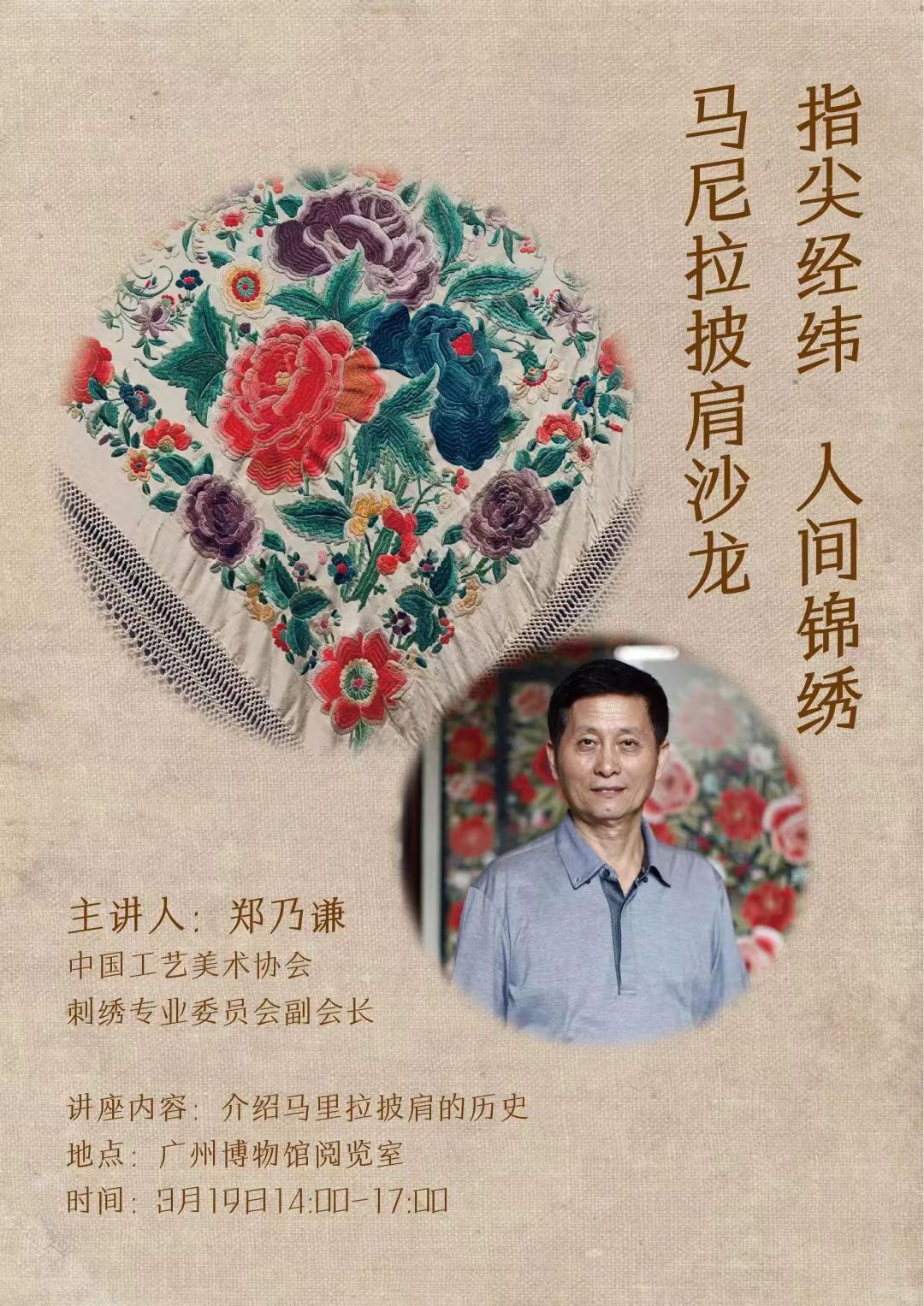 2023年3月19日,广州博物馆特邀非遗传承人郑乃谦来馆分享广绣文化。