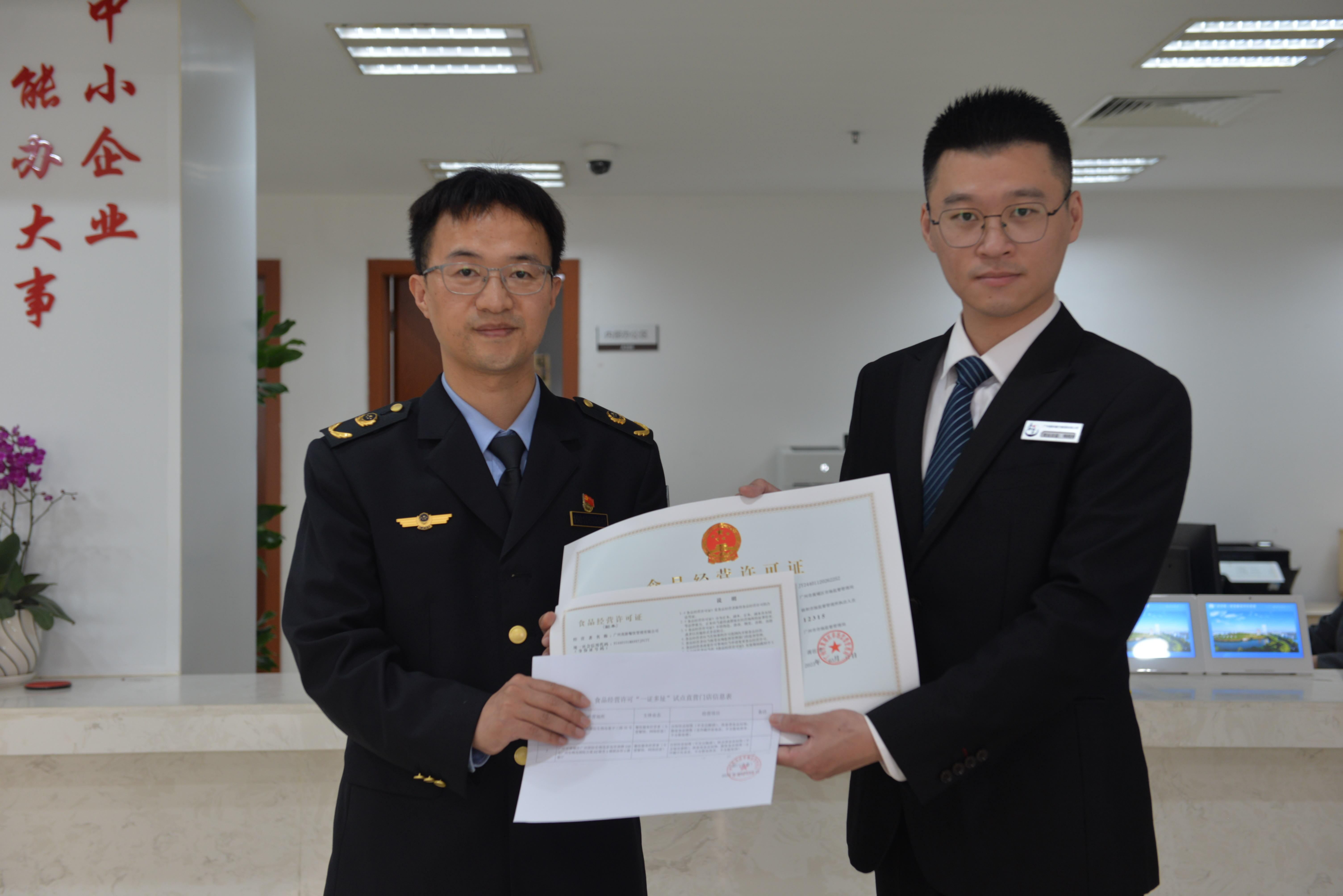 3月17日,广州高新餐饮管理有限公司在黄埔区政务服务大厅办事窗口领到了“一证多址”食品经营许可证,成为全省首家享受到“一证多址”改革红利的企业。