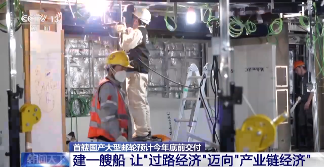 中国船舶外高桥造船邮轮办公室主任 大型邮轮工程项目副经理 易国伟:顾客在登船和下船以后,在当地也会进行对应的消费和娱乐,所以对当地港口的母港经济拉动也是比较明显的。中国的邮轮产业如果按照正常的发展速度,预估在2035年可以达到一年5000亿元的产值。