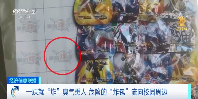 这些带有潜在危险的“炸包”和“臭包”就这样流向校园周边,成为儿童手里的玩具。