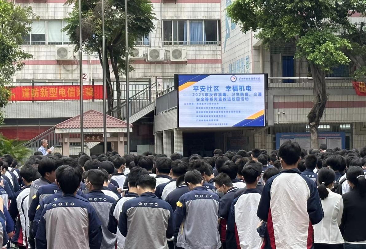 3月20日,广州市机电技工学校的师生们迎来一群熟悉的特殊到访者。他们是荔湾区冲口街道工作人员、社卫中心医生和冲口派出所民警,“警医街”共同走进校园宣讲,为同学们筑牢防范意识,守护人身财产安全,呵护他们健康成长。
