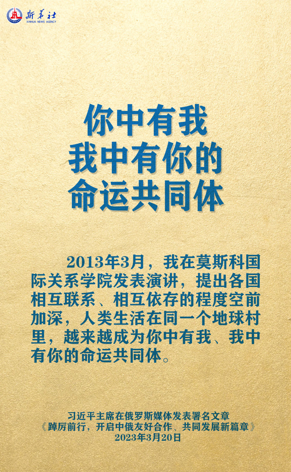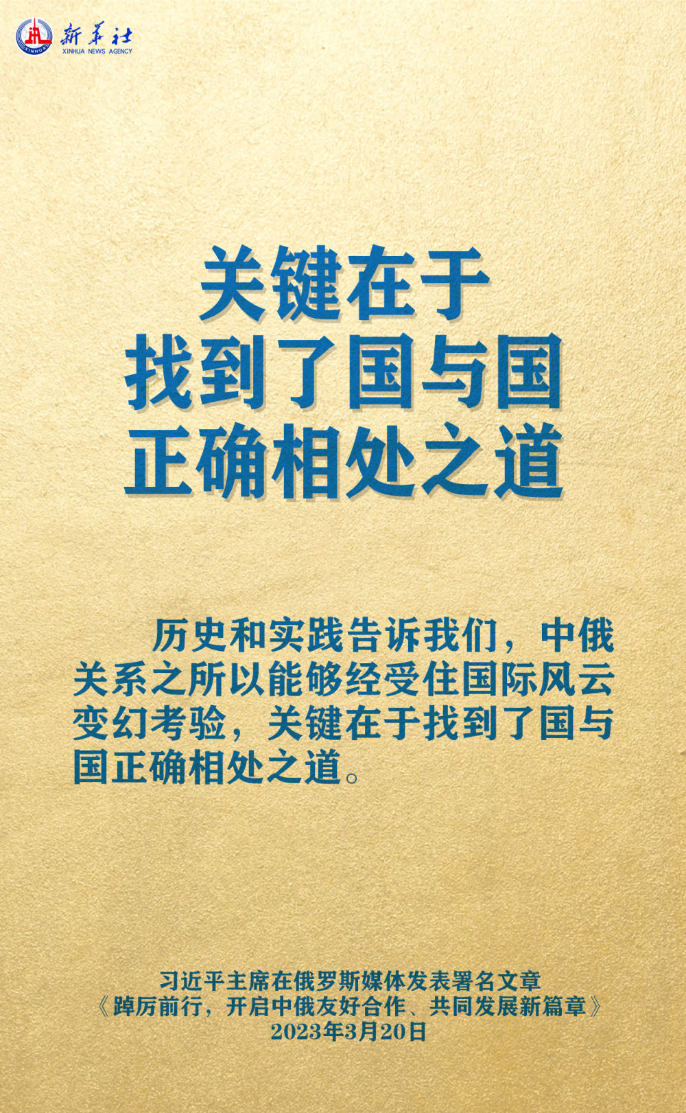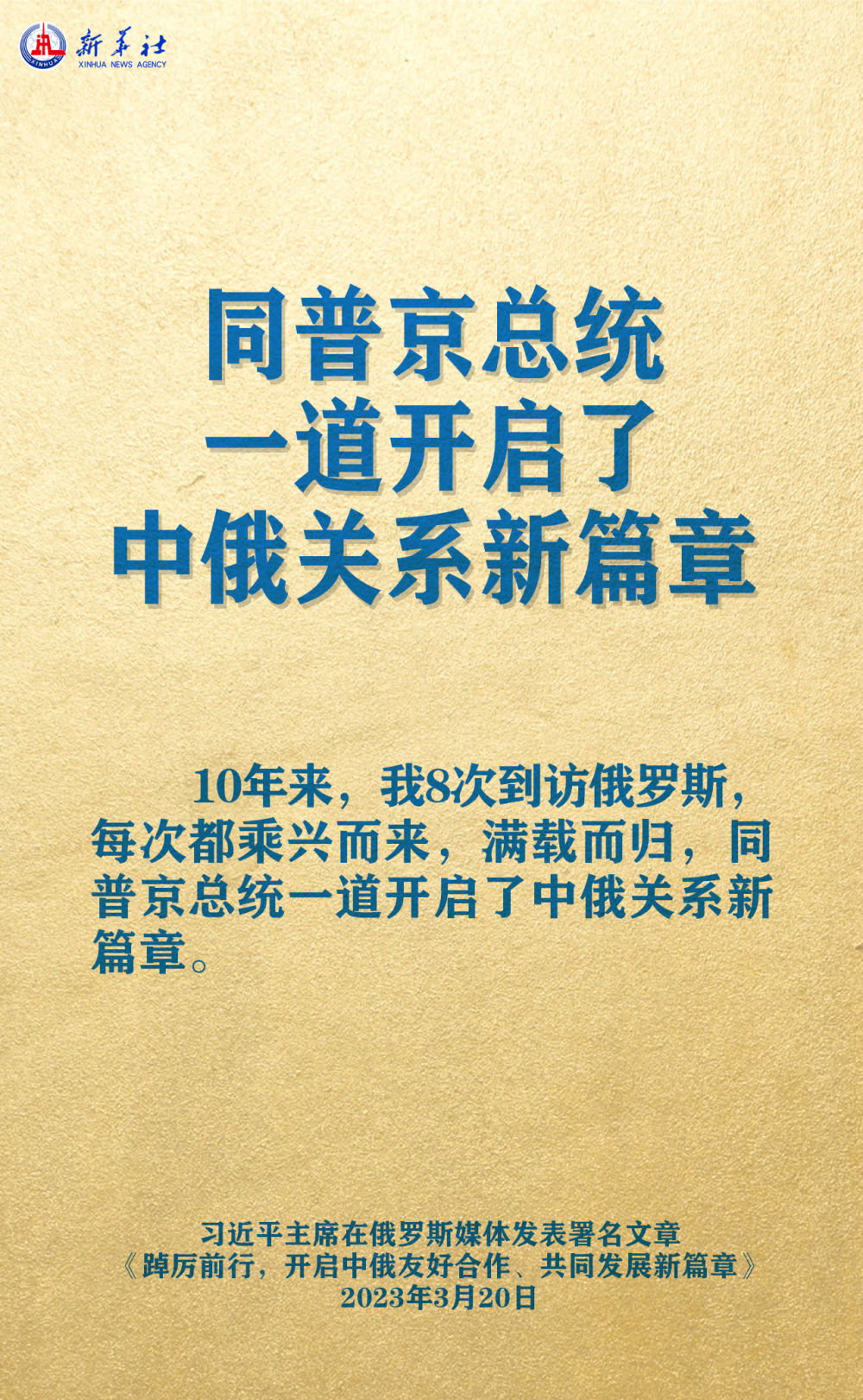 3月20日,在赴莫斯科对俄罗斯联邦进行国事访问之际,国家主席习近平在《俄罗斯报》和俄新社网站发表题为《踔厉前行,开启中俄友好合作、共同发展新篇章》的署名文章。