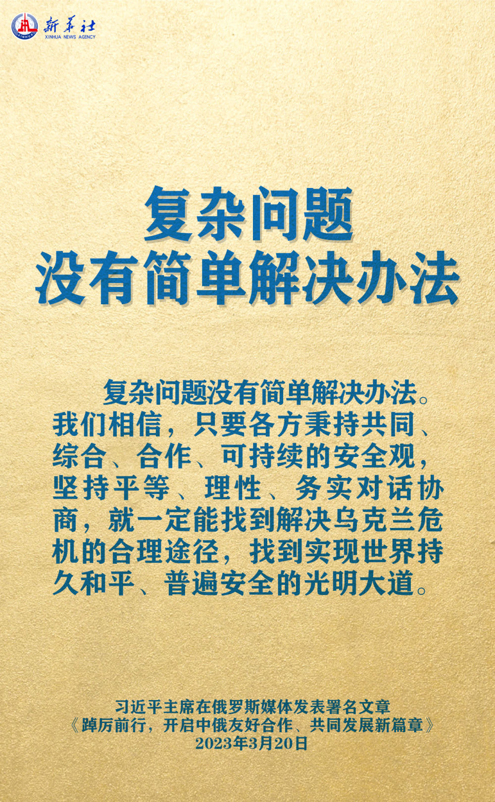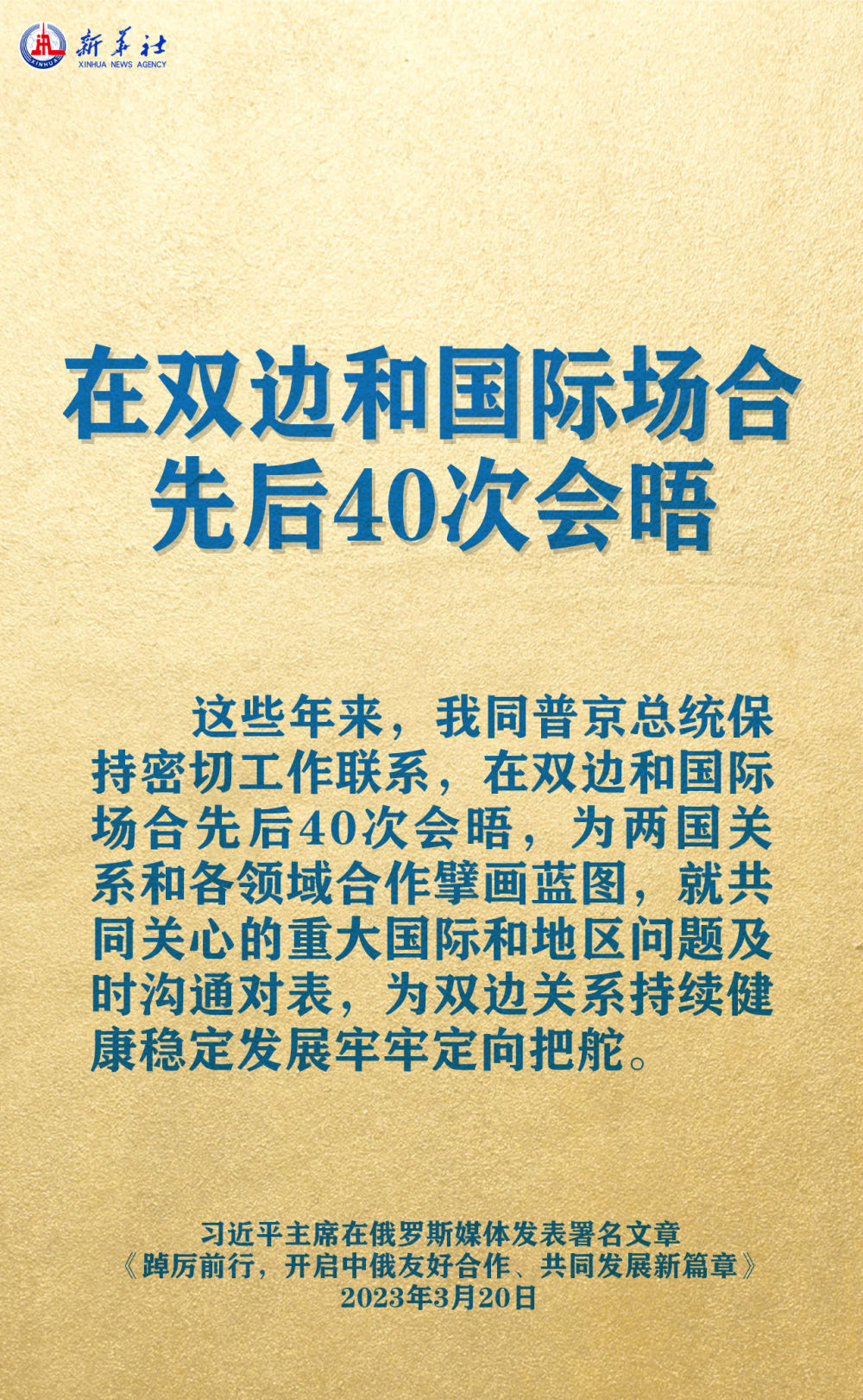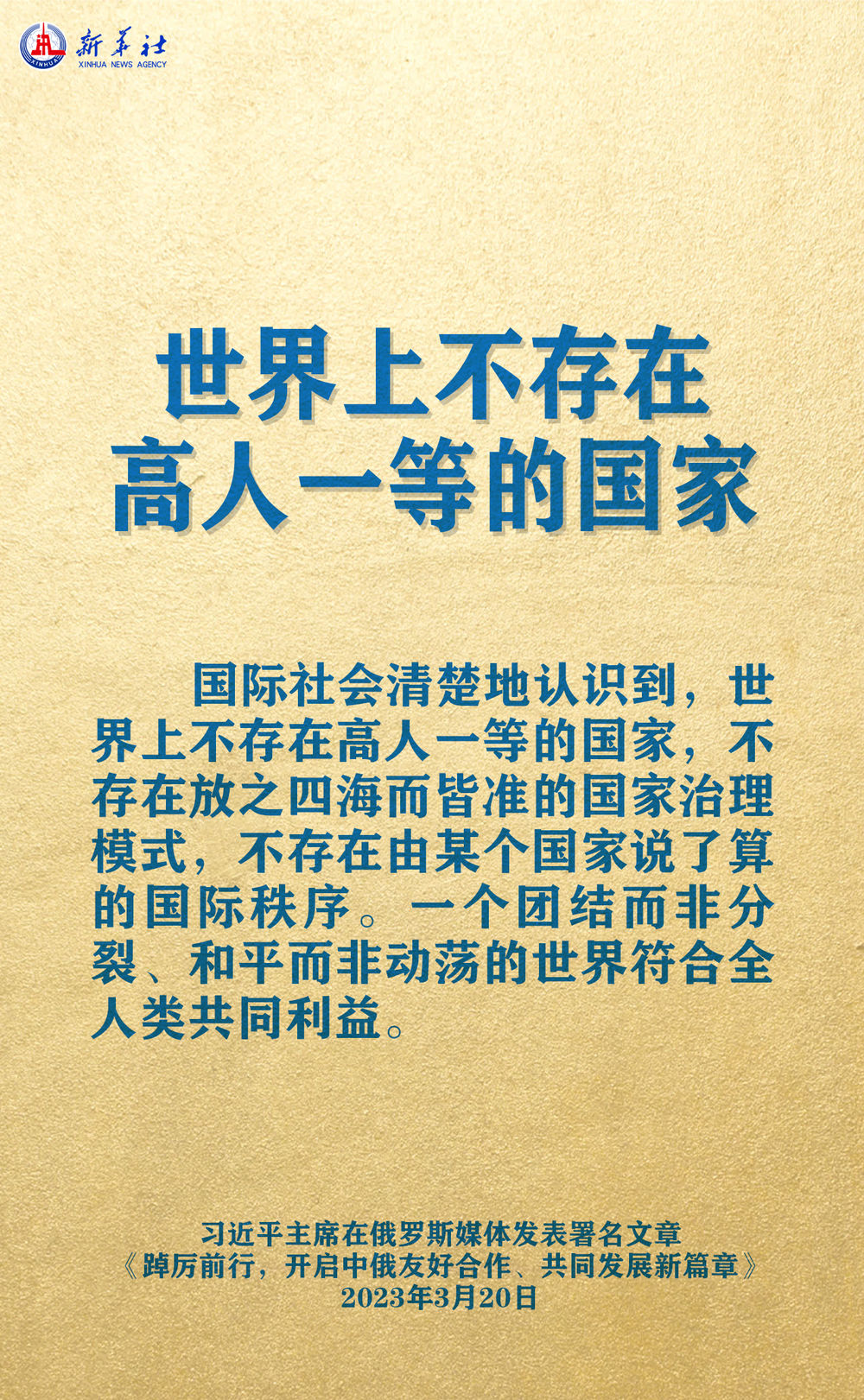 3月20日,在赴莫斯科对俄罗斯联邦进行国事访问之际,国家主席习近平在《俄罗斯报》和俄新社网站发表题为《踔厉前行,开启中俄友好合作、共同发展新篇章》的署名文章。