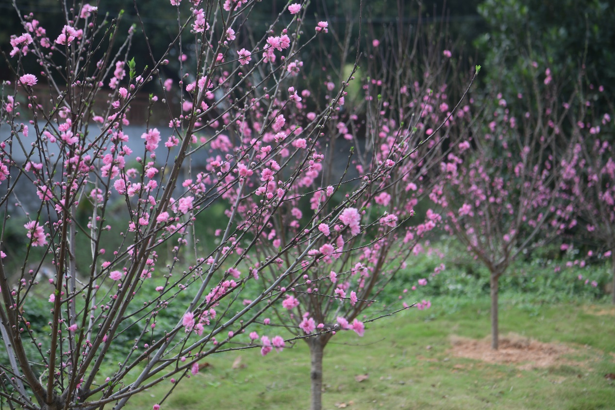 盘山而上,一树树春花盛开。上山的道路是成行的宫粉紫荆,缀成花潮,汹涌而来。山腰里是新种下的桃花树,还有许多烂漫的牵牛花、野山花,有如一席华美的地衣,以生命的热情歌颂大地之春。