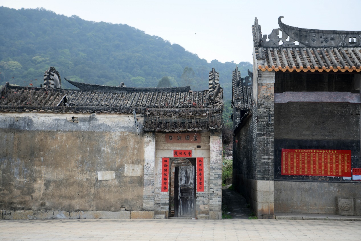 祠堂紧邻别墅,崭新的红色告示布、临时锁上的半掩木门,不时在门前打闹嬉戏的孩童,无不散发着悠然和惬意的山村气息。